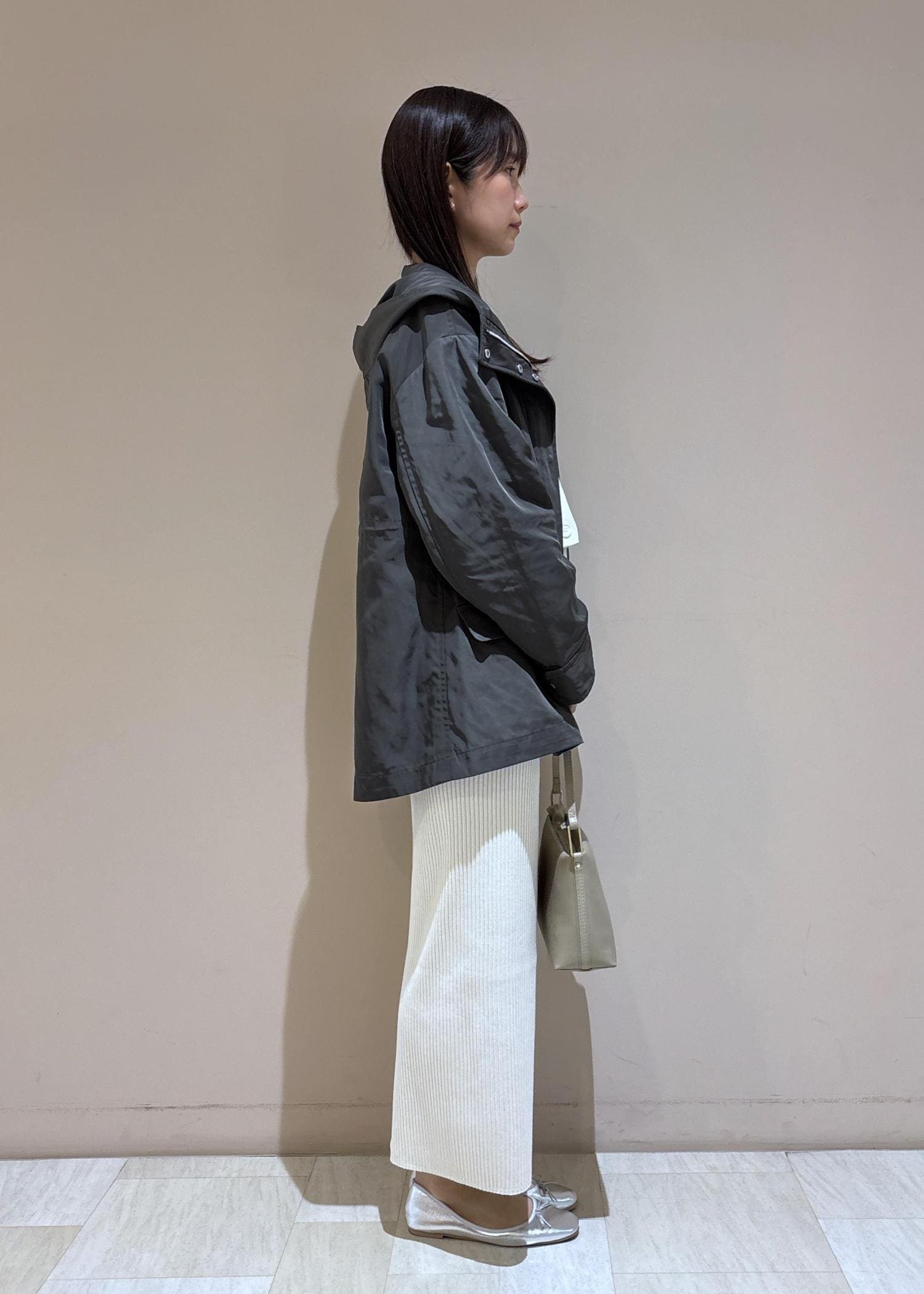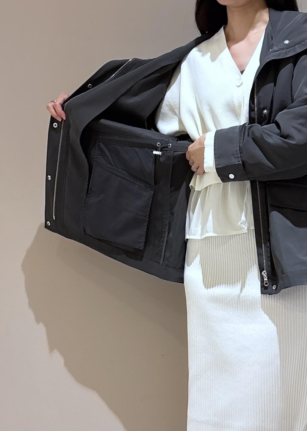 裾のシフォン素材が軽やかで春らしい柔らかな印象で着ていただけます。 -