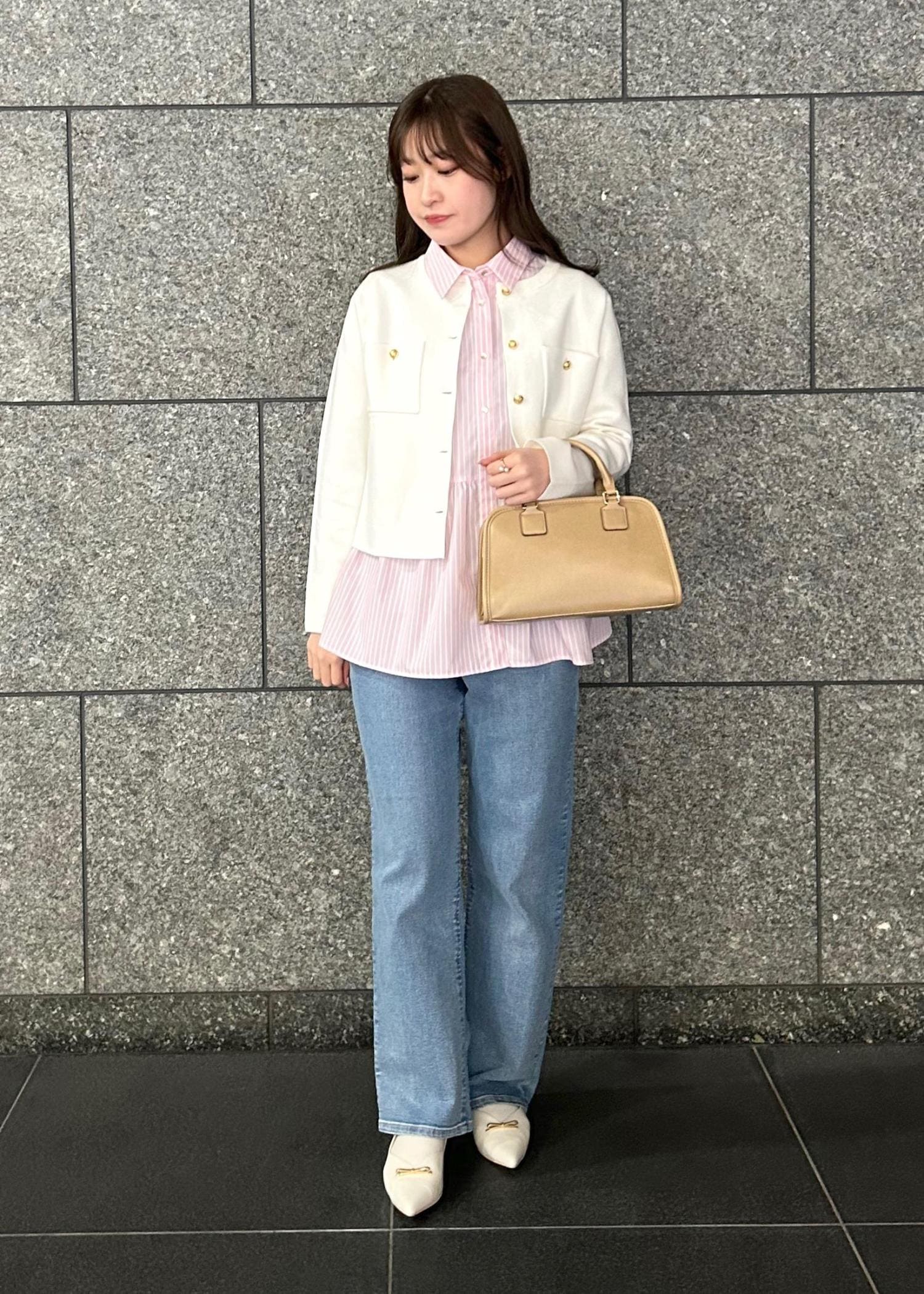 ピンク✖︎ホワイトで春らしいコーデにしました!