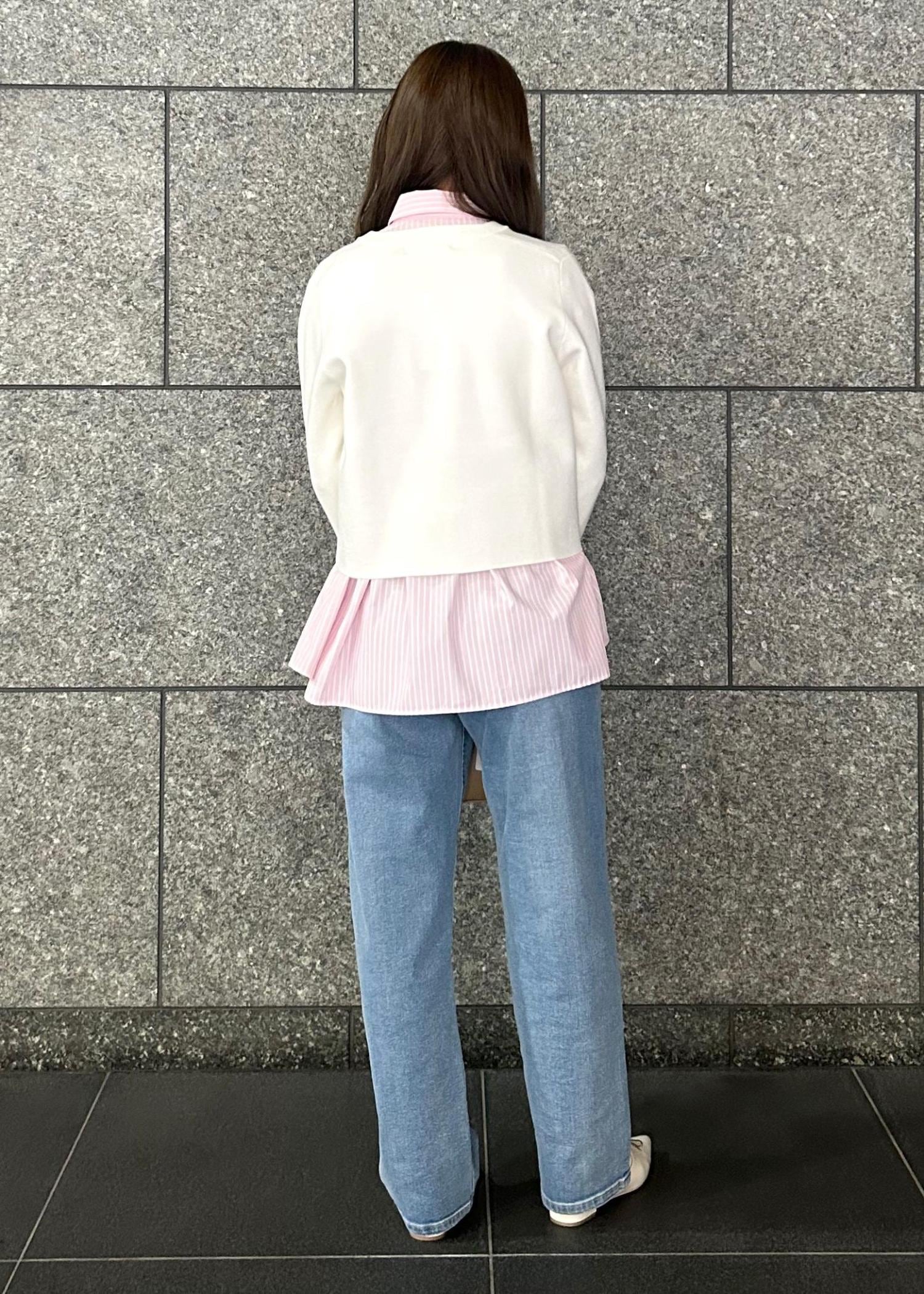 1枚で着ても、ニットやカーディガンの中にレイヤードしていただいても可愛く着れます! -