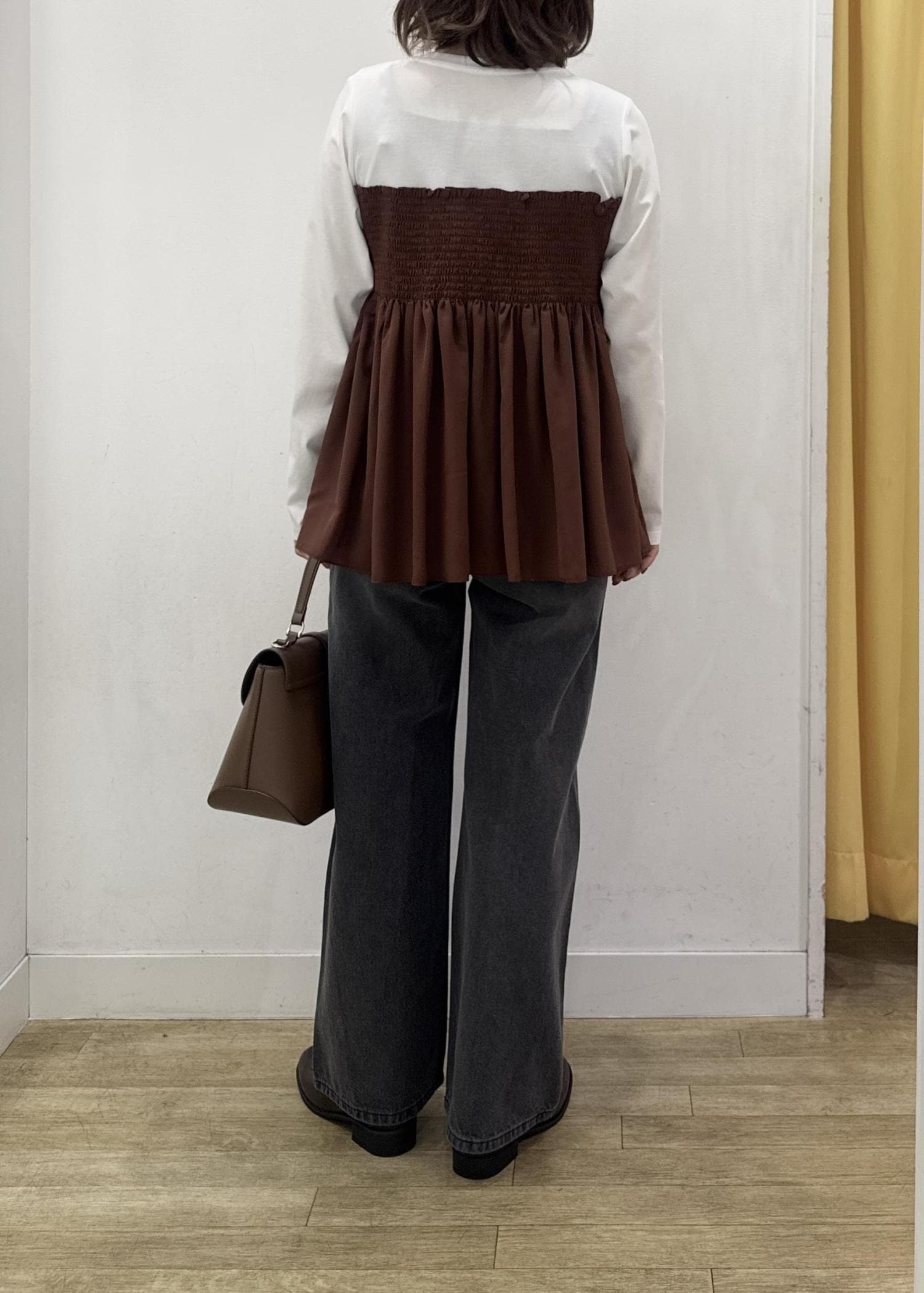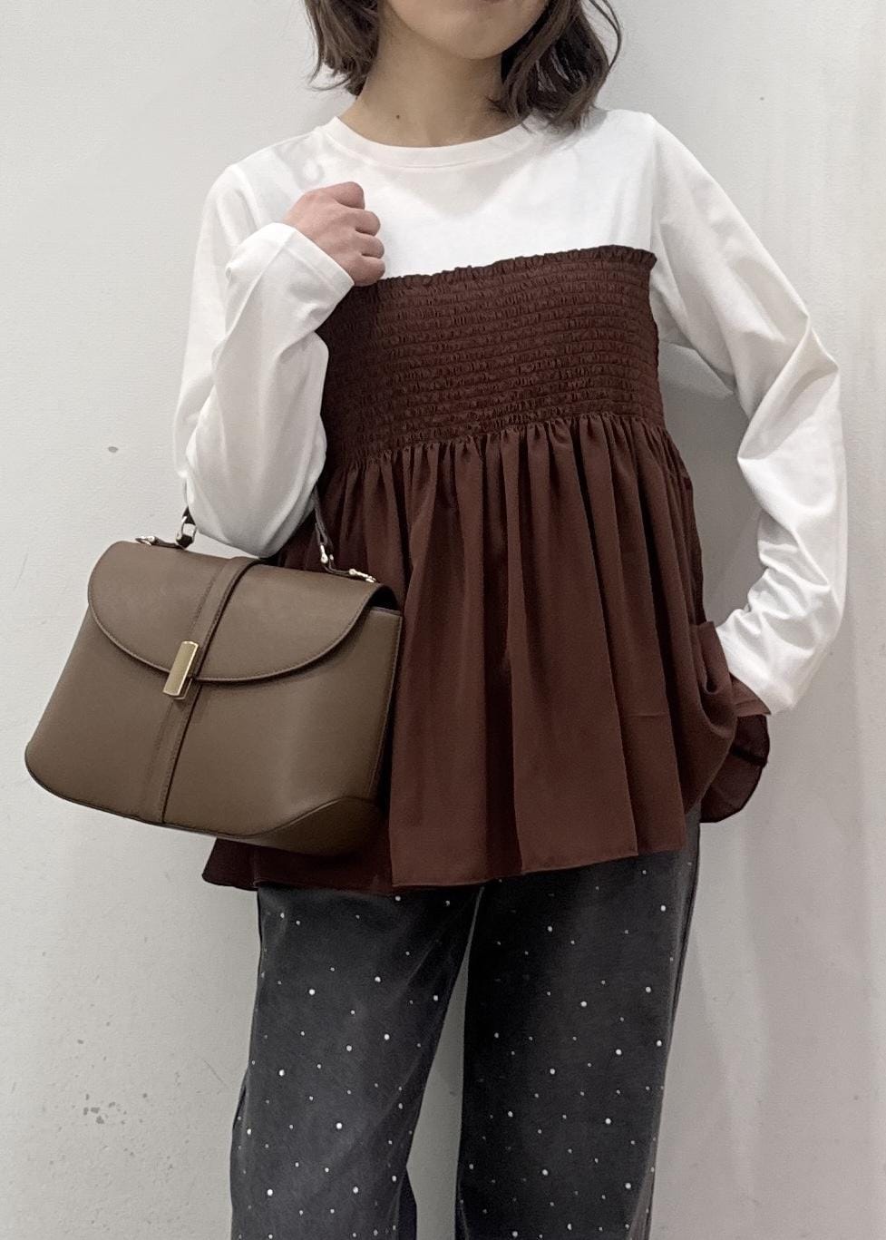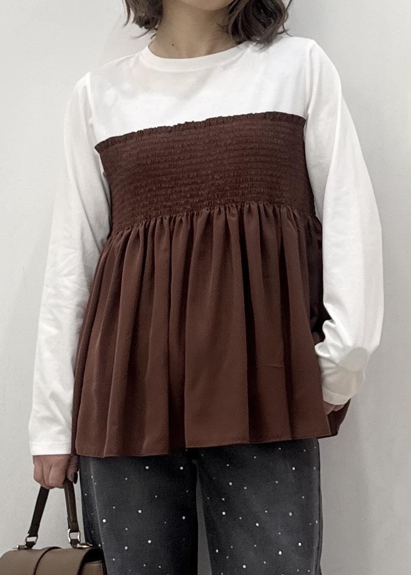 ROPÉ PICNICシャーリングビスチェ風ドッキングロングスリーブカットソー/リンクコーデダークブラウン系 / F¥4,499レビュー程よくフィットするジャストなサイズ感。