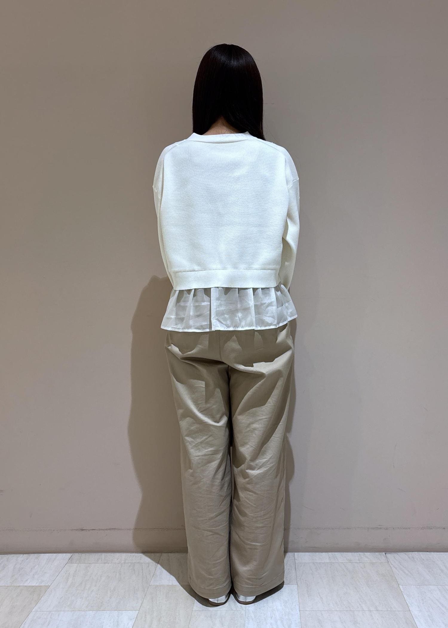 裾のシフォン素材が軽やかで春らしい柔らかな印象で着ていただけます。 -