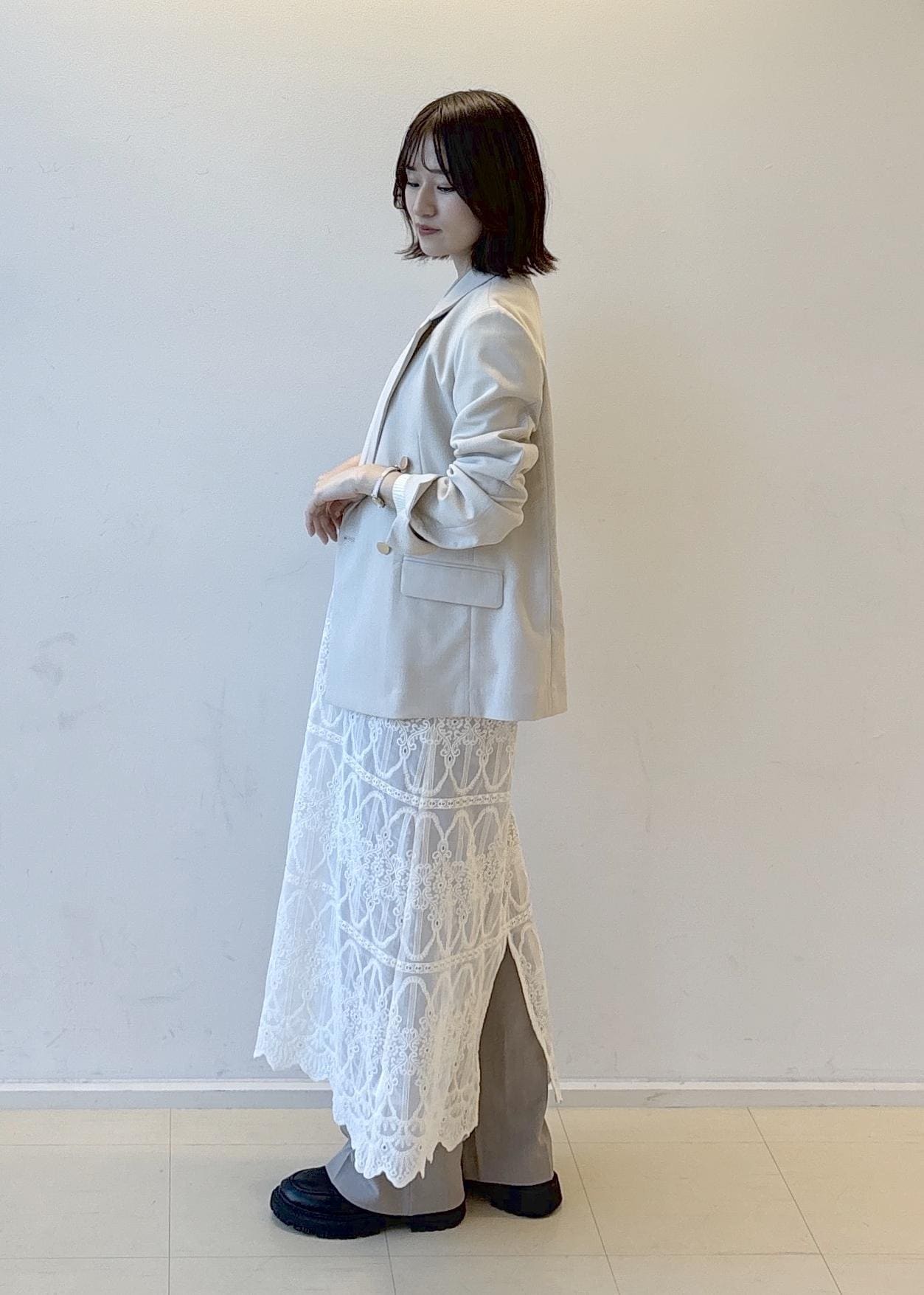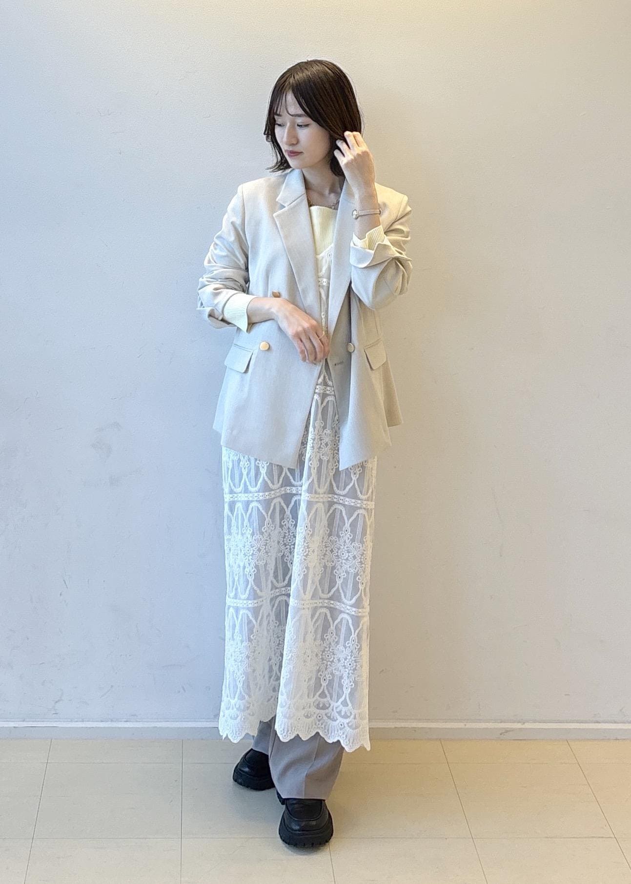 新作のカナパジャケットにレースワンピースを合わせてトレンド感と綺麗めカジュアルスタイルを意識してみました♪
