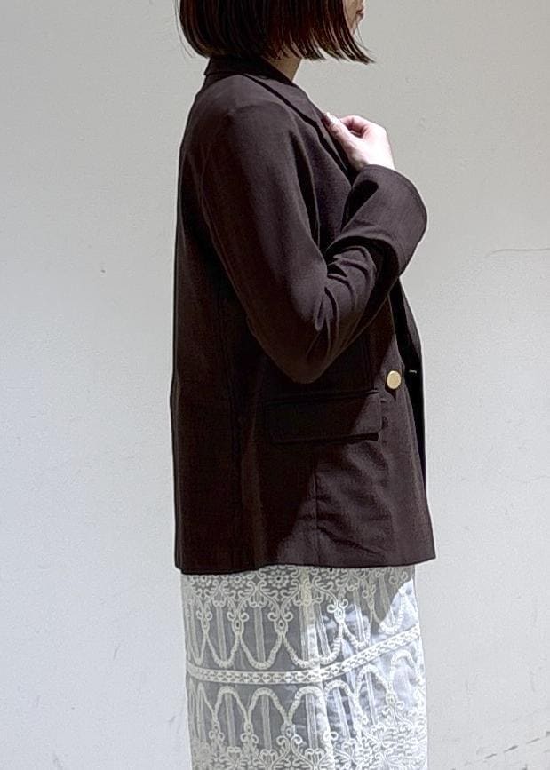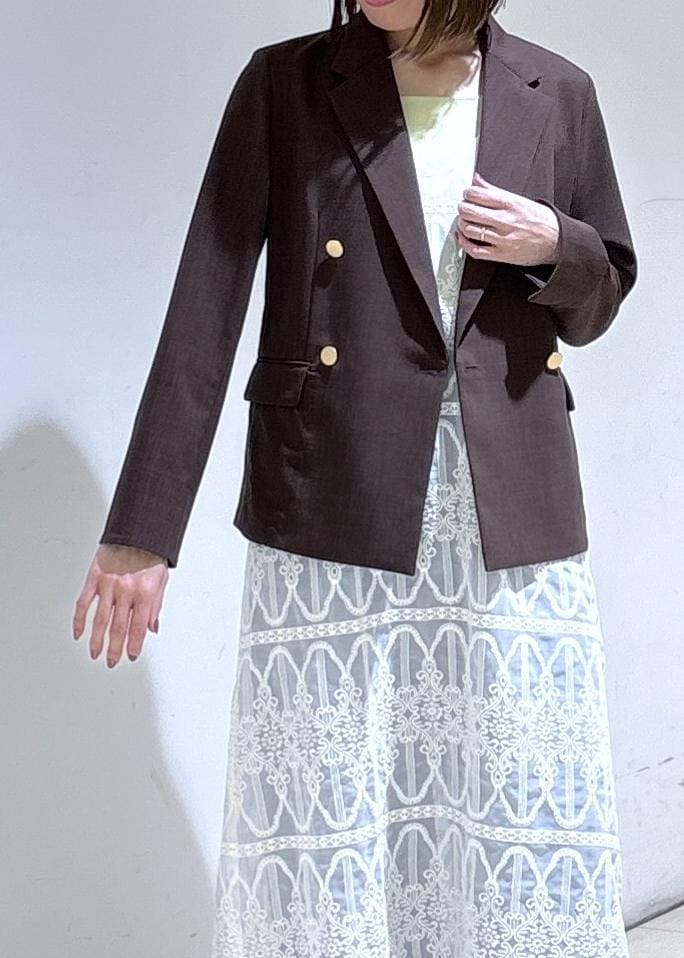 ダークブラウンが今年らしい金ボタンジャケットに