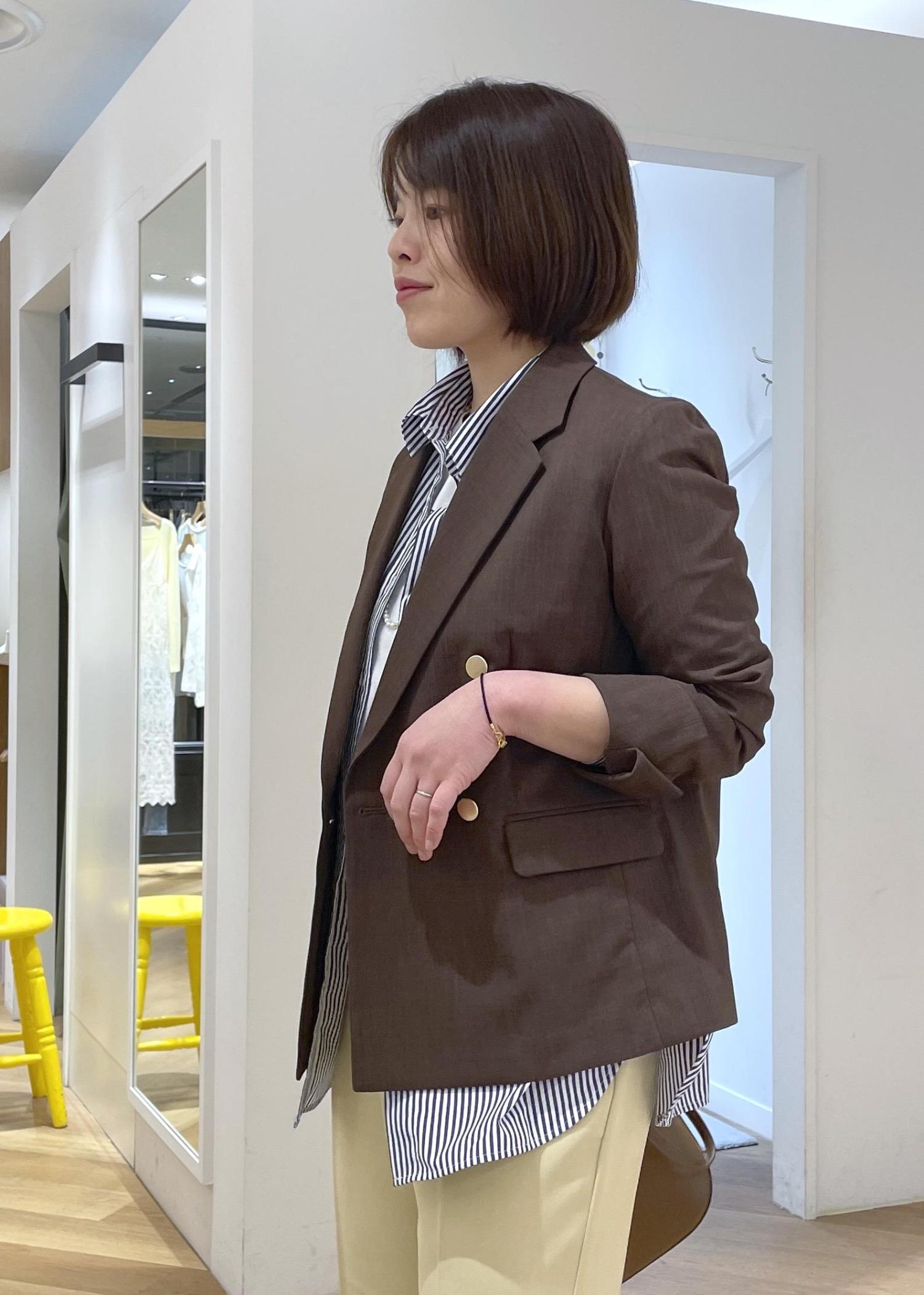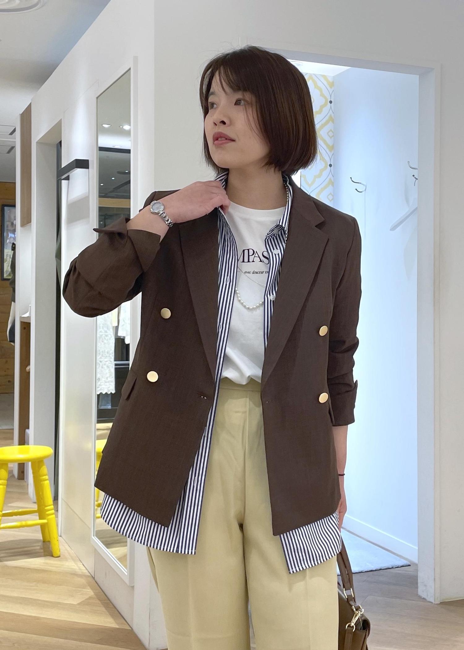 2BUY10%OFFROPÉ PICNICカナパ 金ボタンジャケット/セットアップ対応・UV・抗菌防臭・接触冷感ダークブラウン / L¥8,492レビュー薄手の少しシャリ感のある生地で清涼感のあるジャケットです。裏地は無く、軽く羽織って頂けます。ゆったりとしたサイズ感でリラックス感ある雰囲気でも合わせて頂けます。