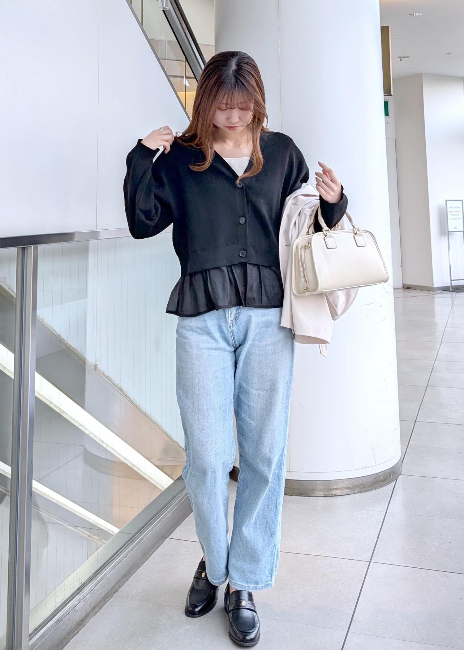ROPÉ PICNIC異素材ドッキングニットカーディガン/イージーケアブラック / F¥5,489レビューゆったりとしたサイズ感で、着丈は腰位置くらいの短め。