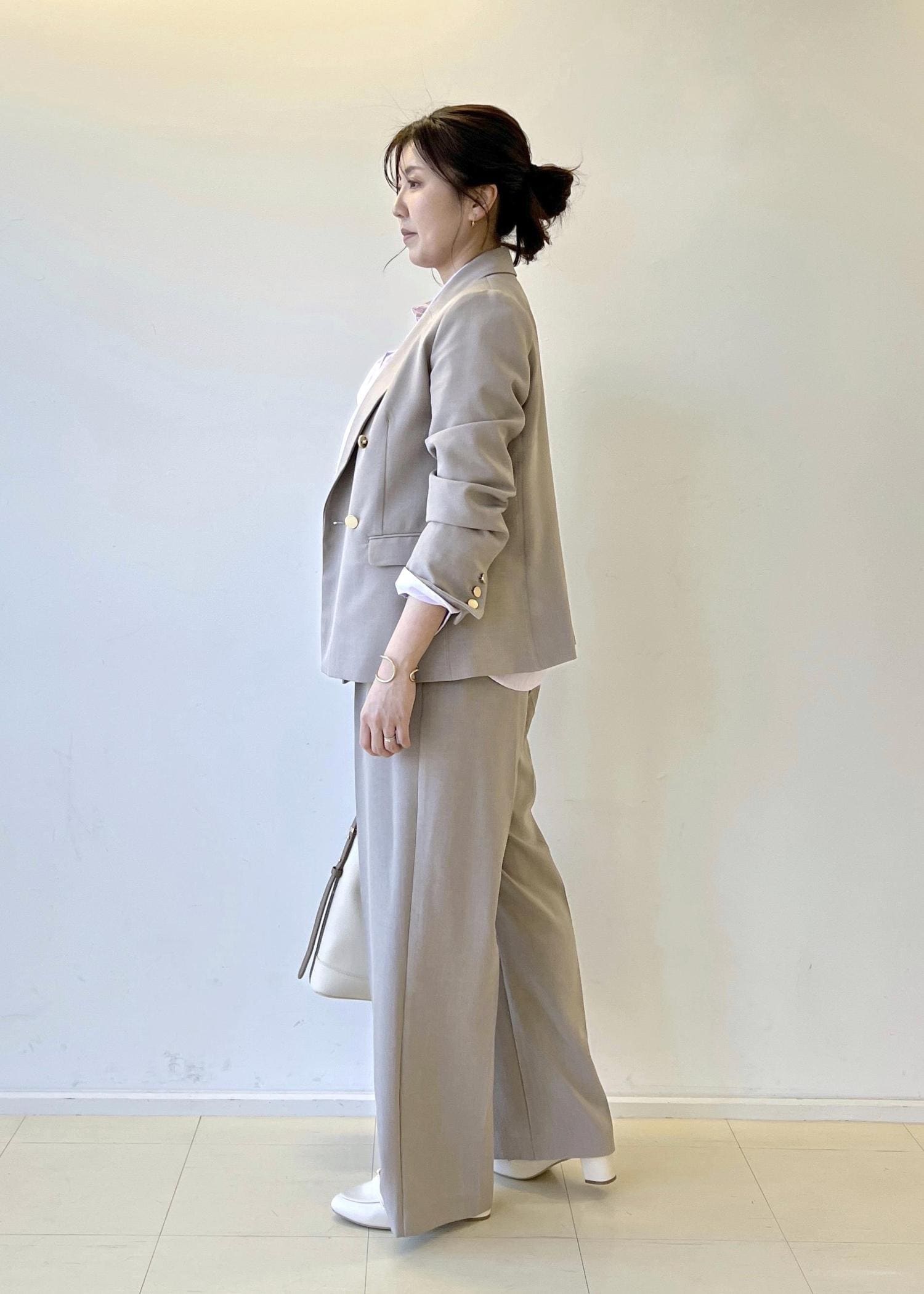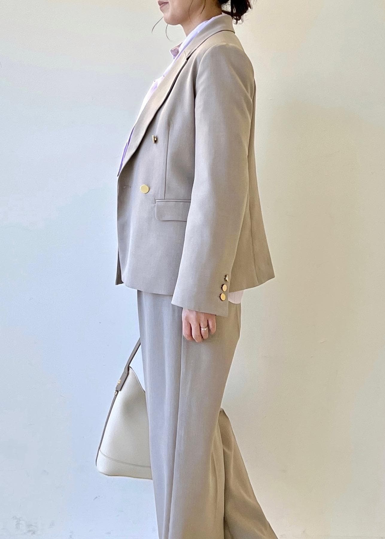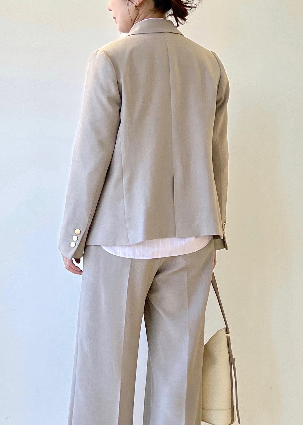 かしこまり過ぎずカジュアルダウンしたセットアップです。セレモニーでもご利用いただけ、その後もプライベートで着回しできるのでオススメです。