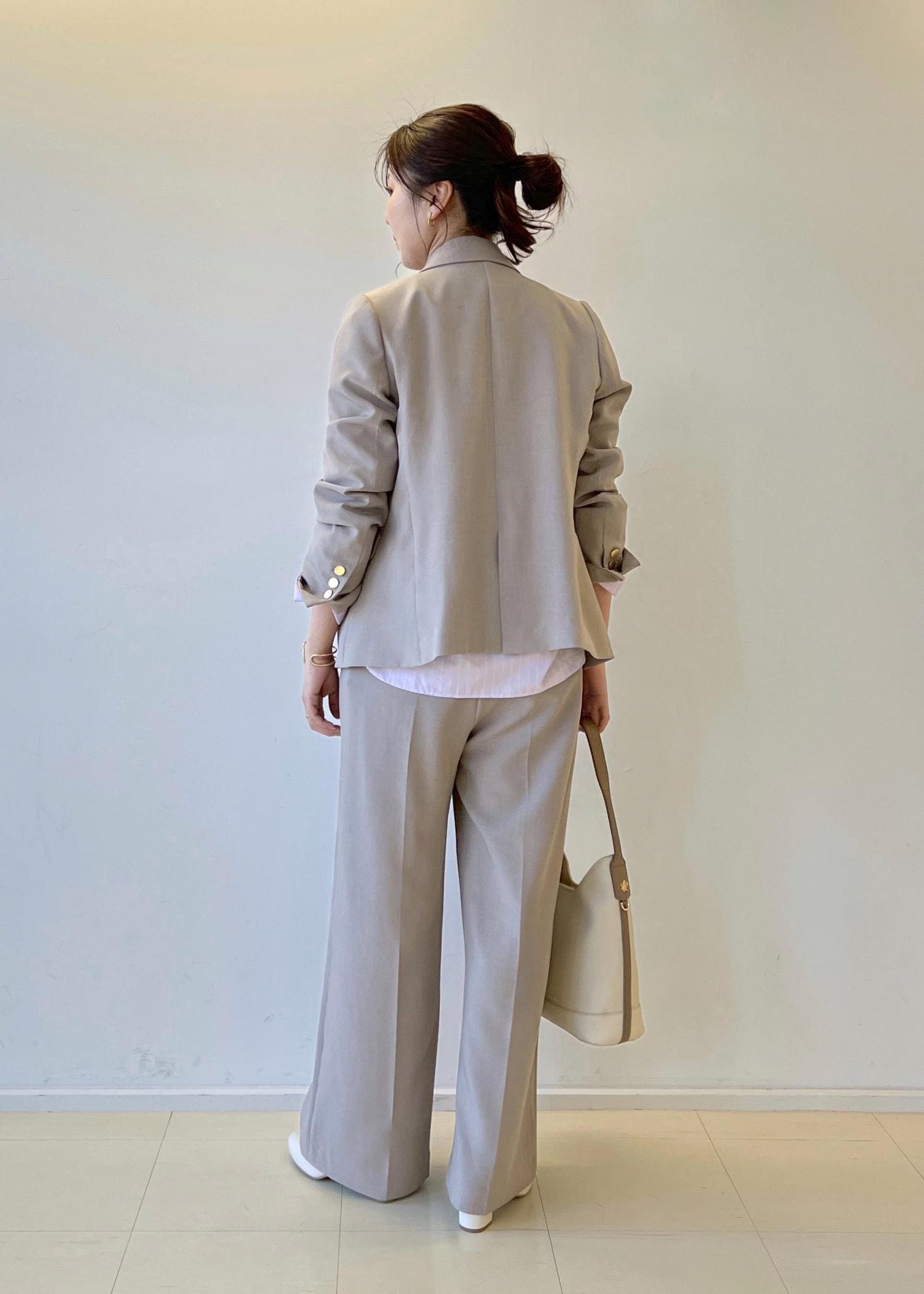 ROPÉ PICNICクリアツイルワイドパンツ/入卒式・セレモニー・セットアップ対応ベージュ系 / L¥5,396レビュー身長162cmでLサイズを着用しています。裾の長さはかかとくらいで、ちょうど良い長さでした。パンツの太さは少し太めで、セットのダブルボタンジャケットとの相性が良いデザインになっています。セレモニーやオフィスカジュアルで選ばれる方も多いです。セットでも単品でも使えるので、プライベートに使えるのも◎です。