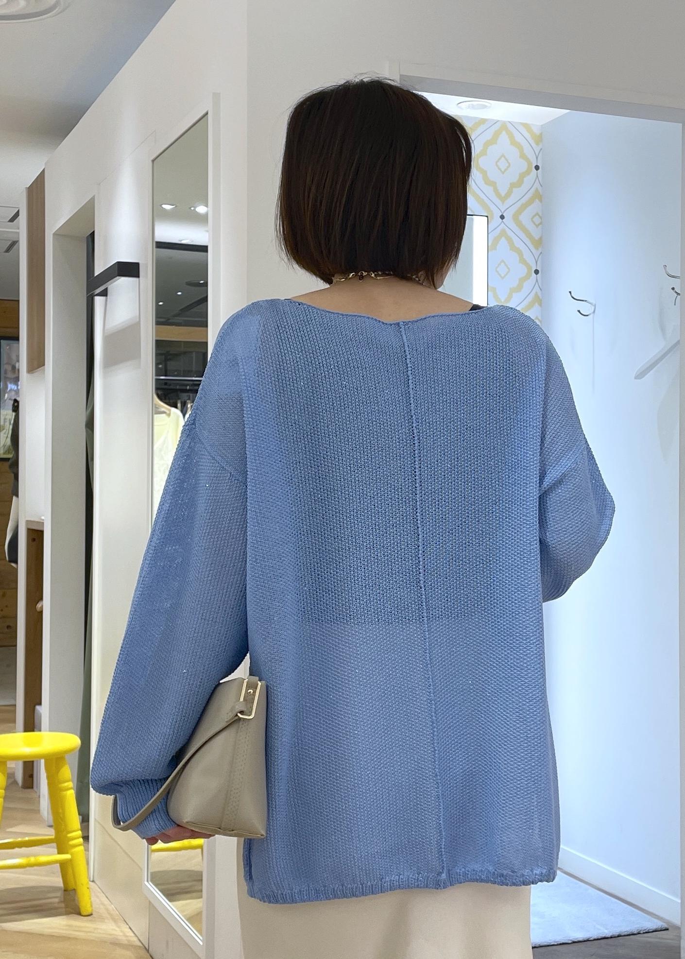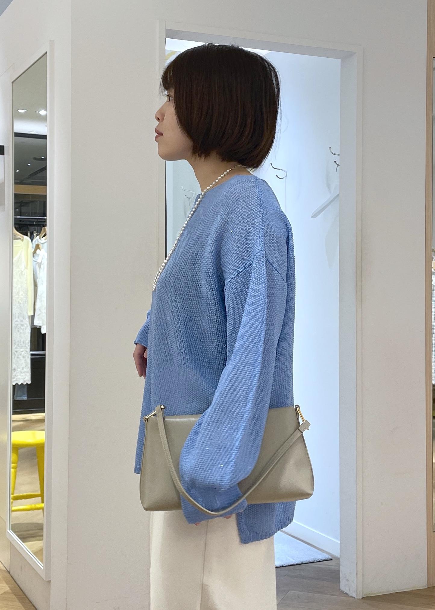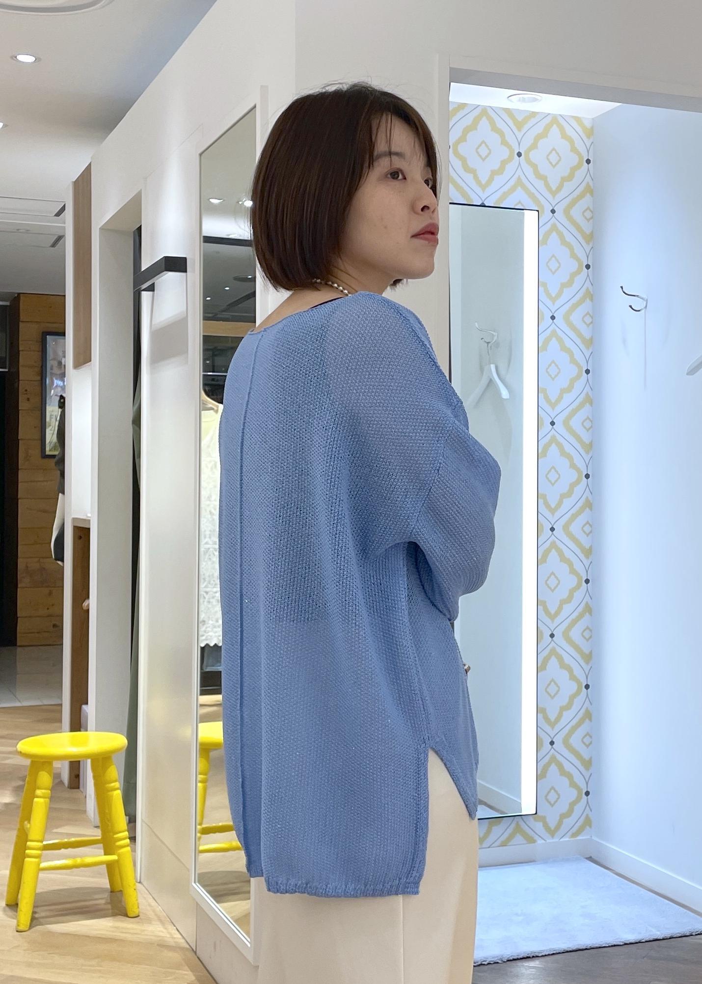 ROPÉ PICNICプチスパンコールメッシュニットサックス / F¥5,489レビュースパンコールが散りばめられたさり気ないキラキラ感が可愛いメッシュニットです。素肌に着てもチクチク感は気にはせず着用できました。メッシュで少し透け感があるので、カップ付きインナーなどの見えても良いインナーと合わせるのがおすすめです。全体的にゆったりとしたシルエットで、ボディラインは拾わずに着用できます。