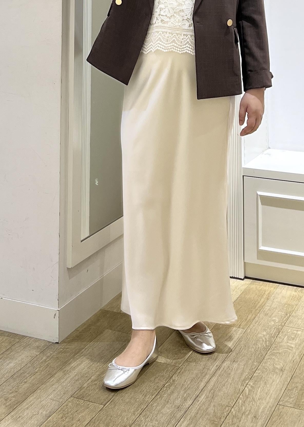 ROPÉ PICNIC細見えバイアスサテンスカート/イージーケアオフホワイト / F¥6,490レビュー上品な光沢感のある素材感が