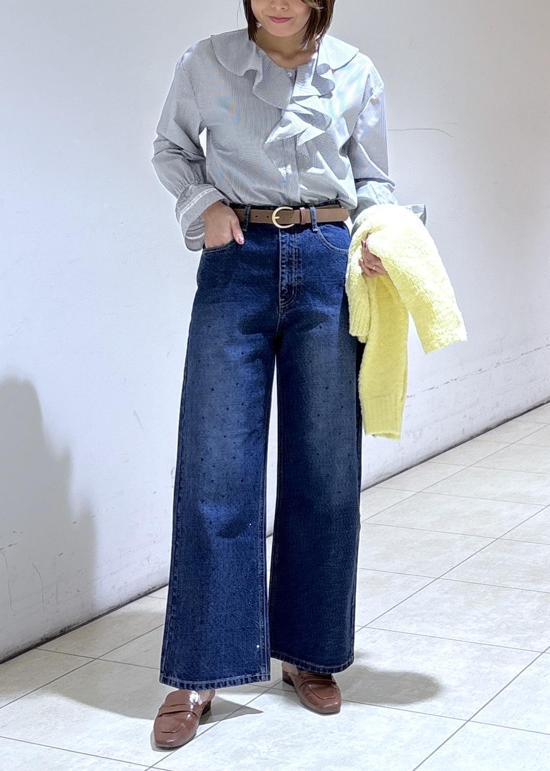 ビジューデニムを合わせた大人カジュアルコーデ!