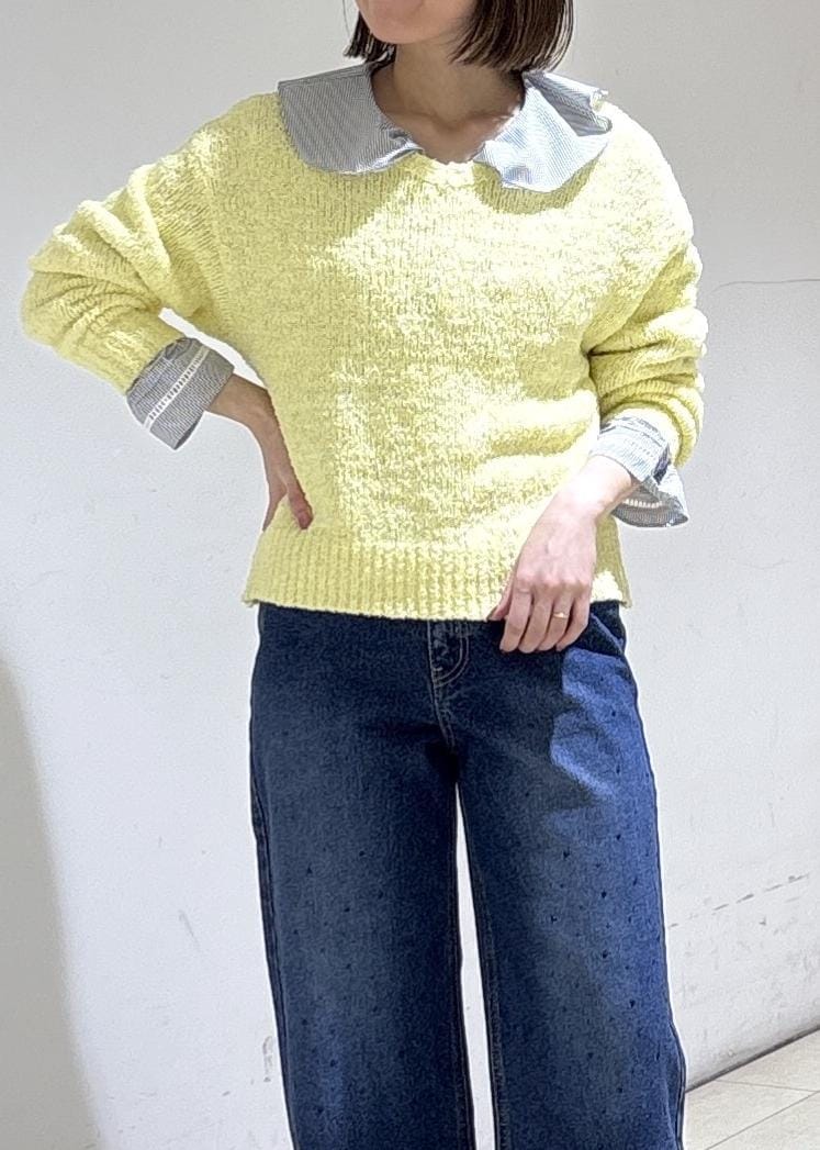 ニットをプラスして気温差の激しい春にぴったりコーデです♪