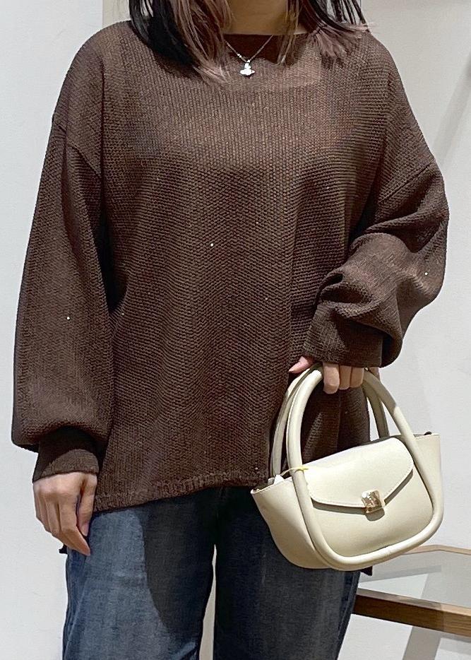 シンプルなメッシュニットですが、プチスパンコールが動くたびにキラキラし、とっても可愛いです○ゆったりとしたサイズ感なのでロンTやシャツのレイヤードも可愛いです。