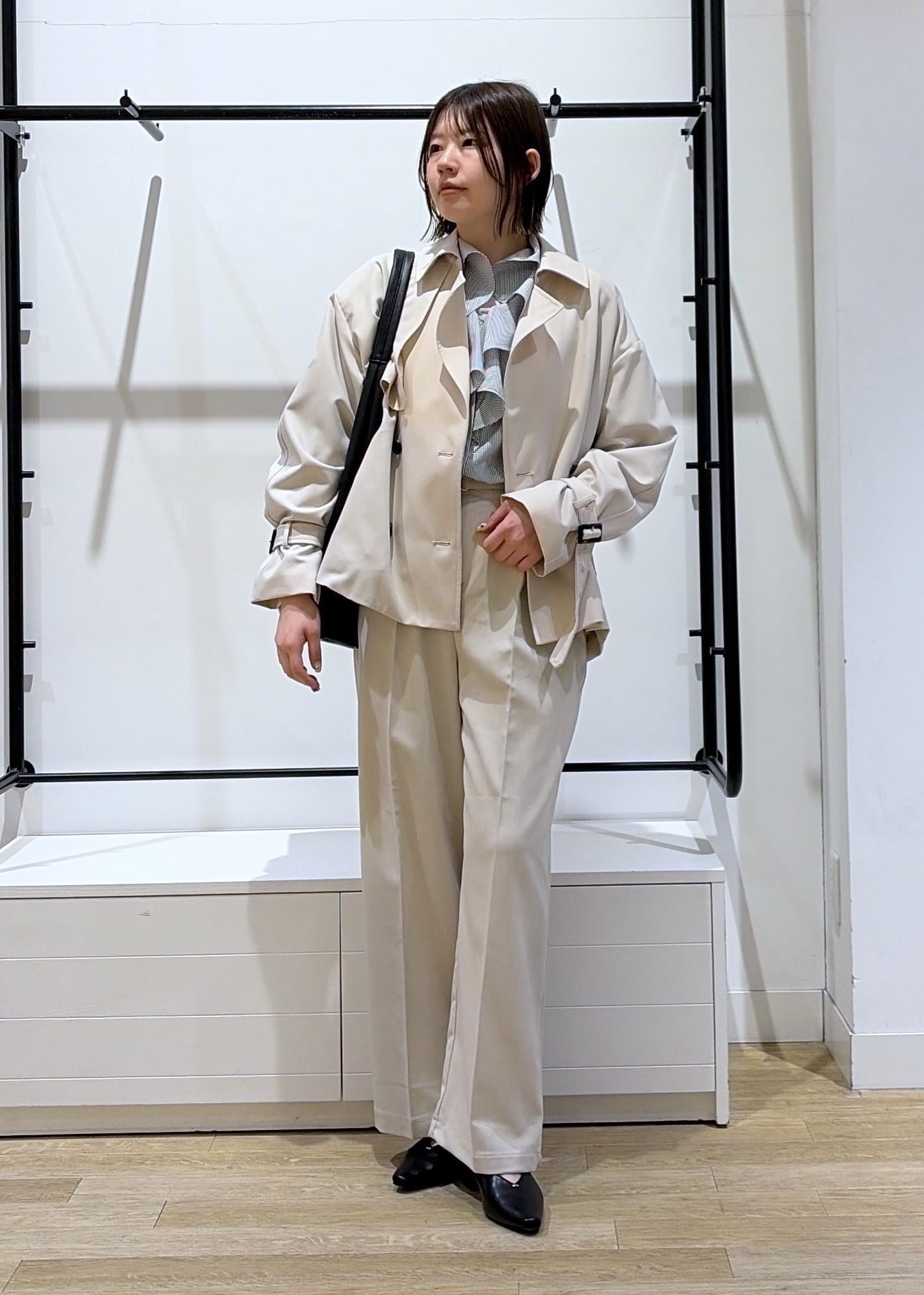 今回は、大人気スプリングアウターにカラーを合わせたお仕事スタイル♪