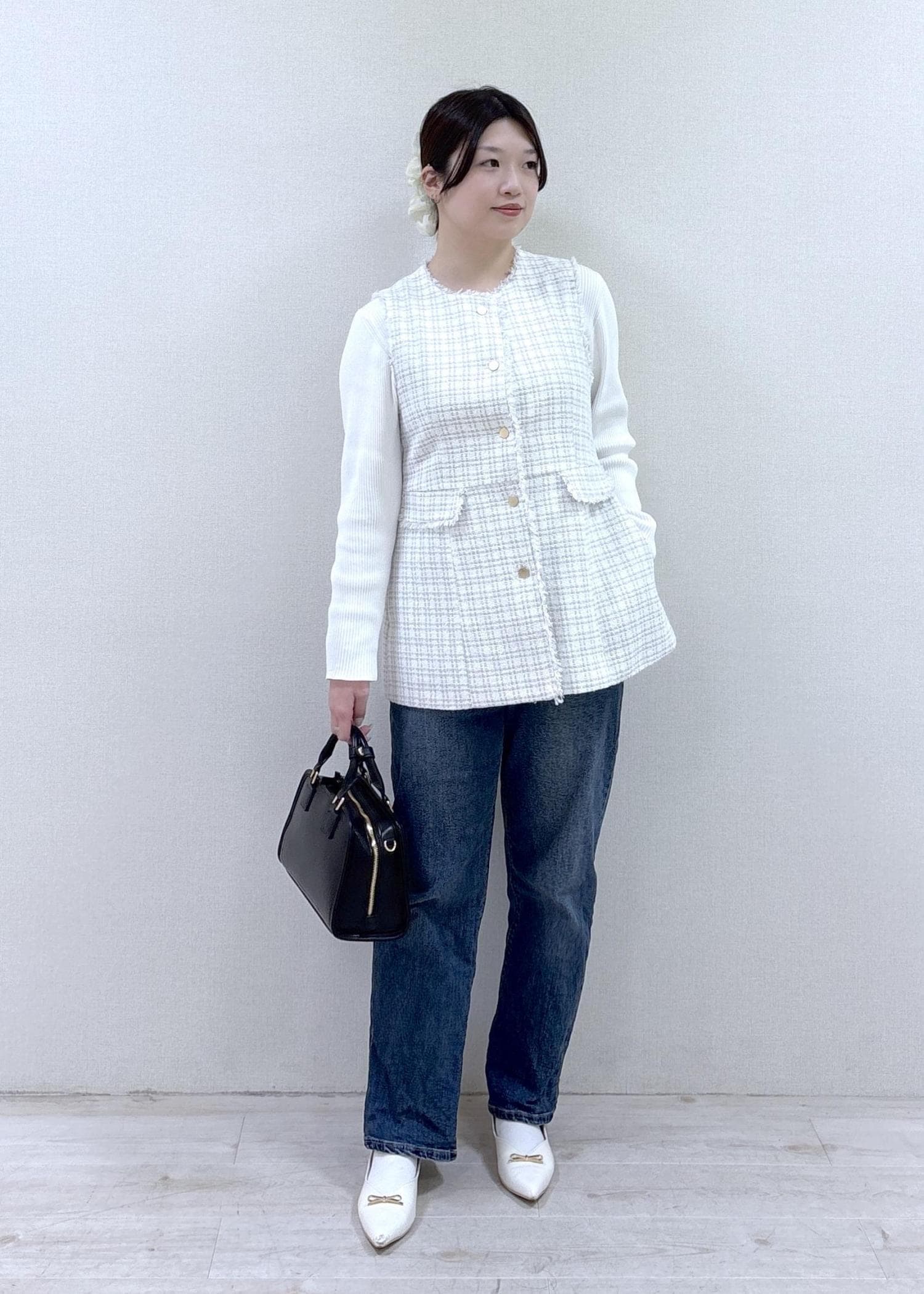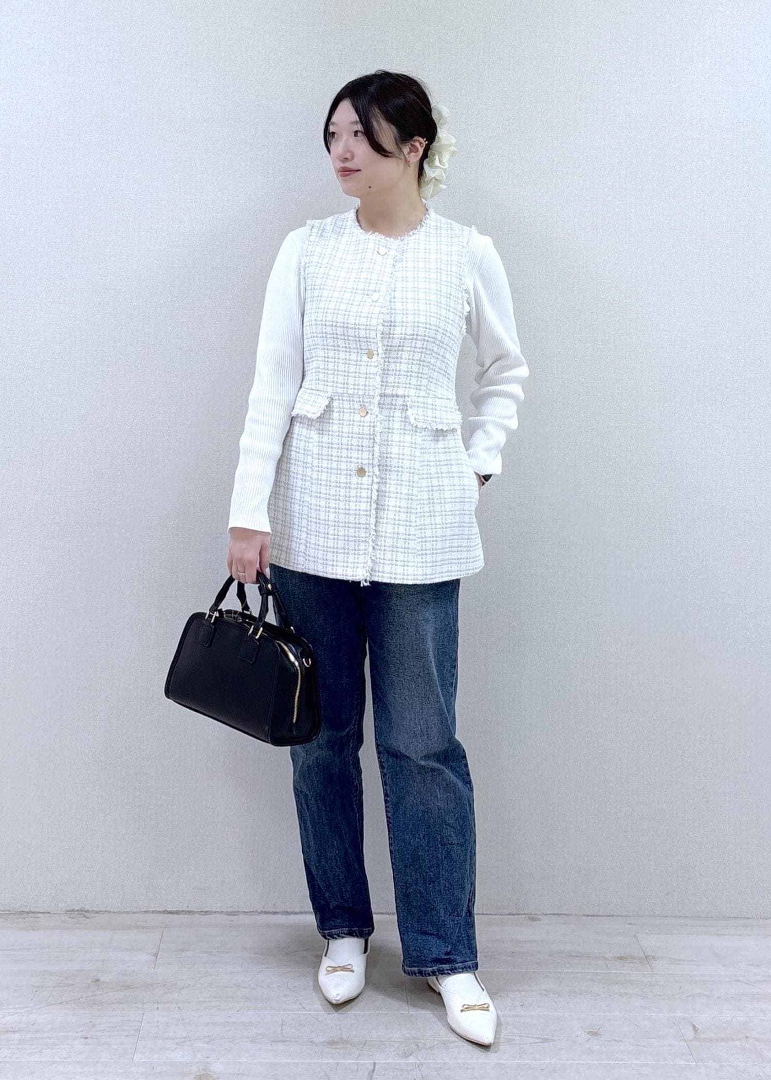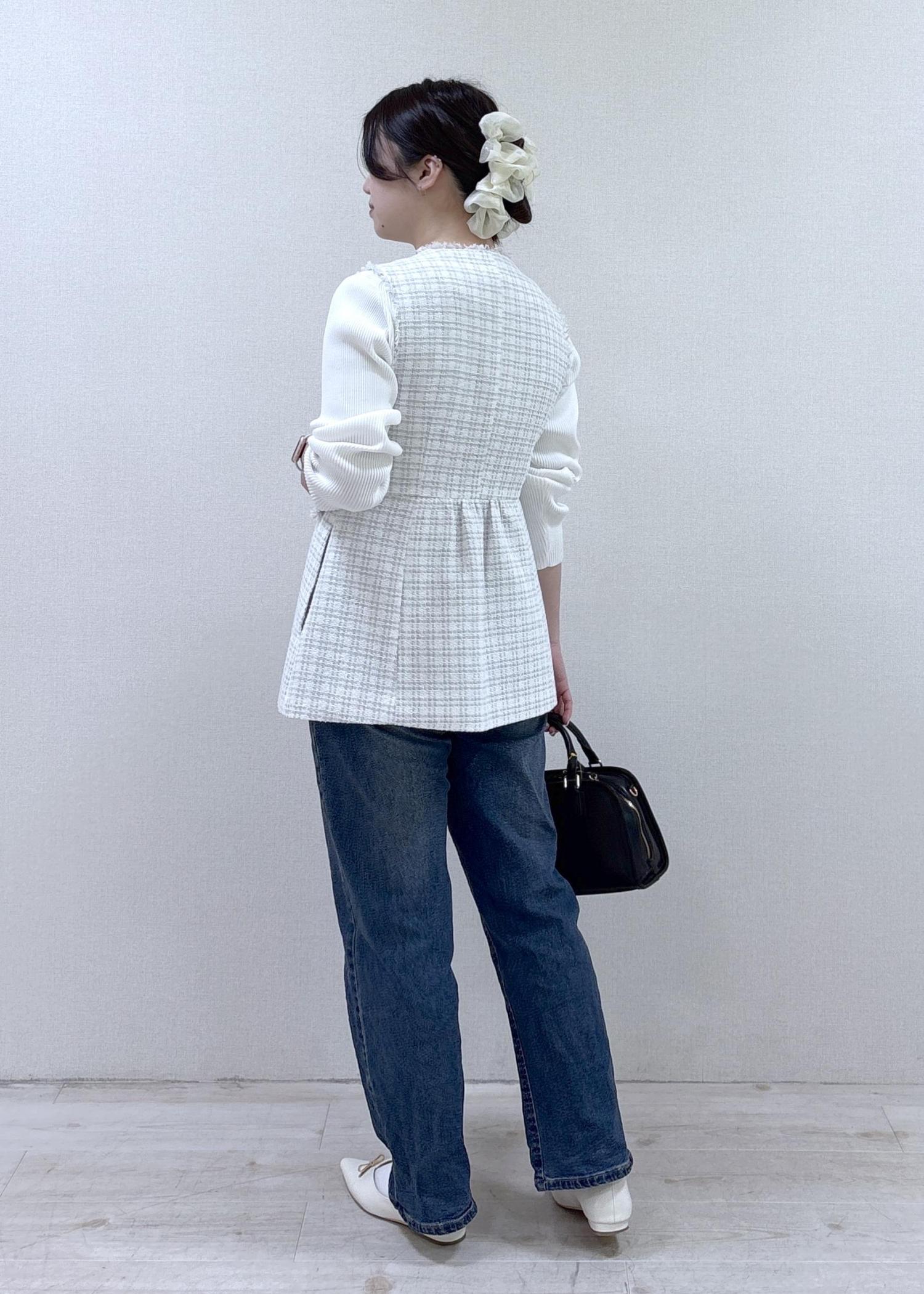 ツイードジレにデニムを合わせて、大人カジュアルなコーデにしてみました!