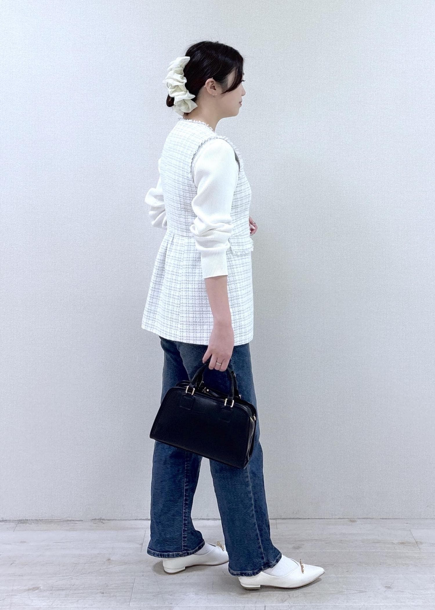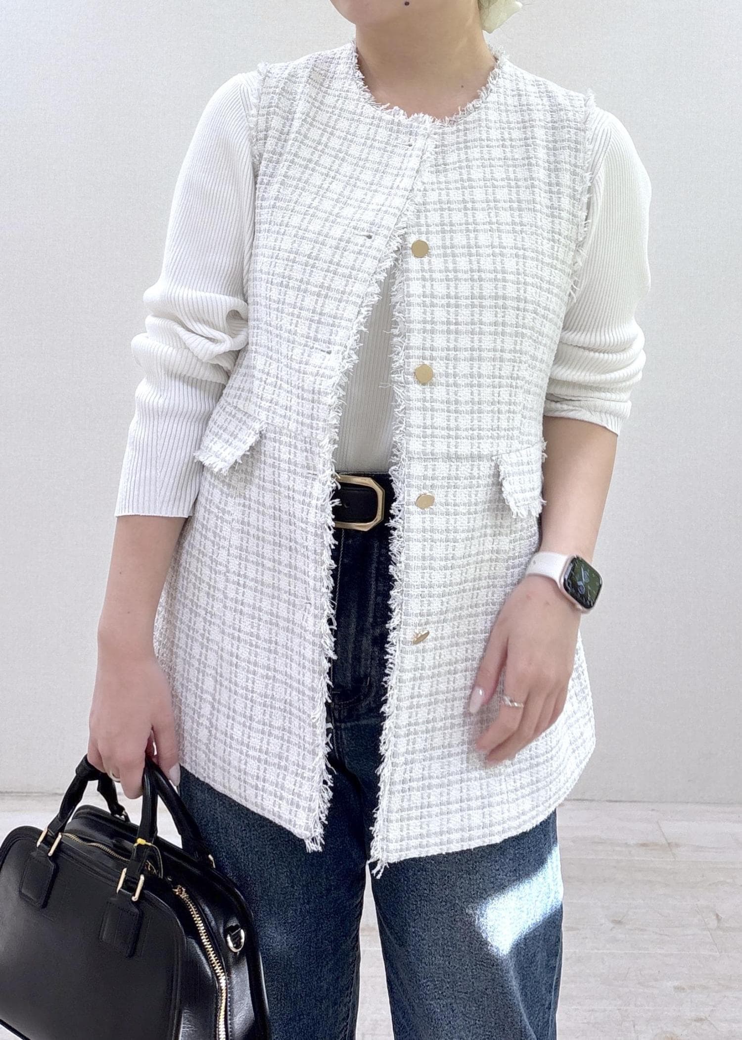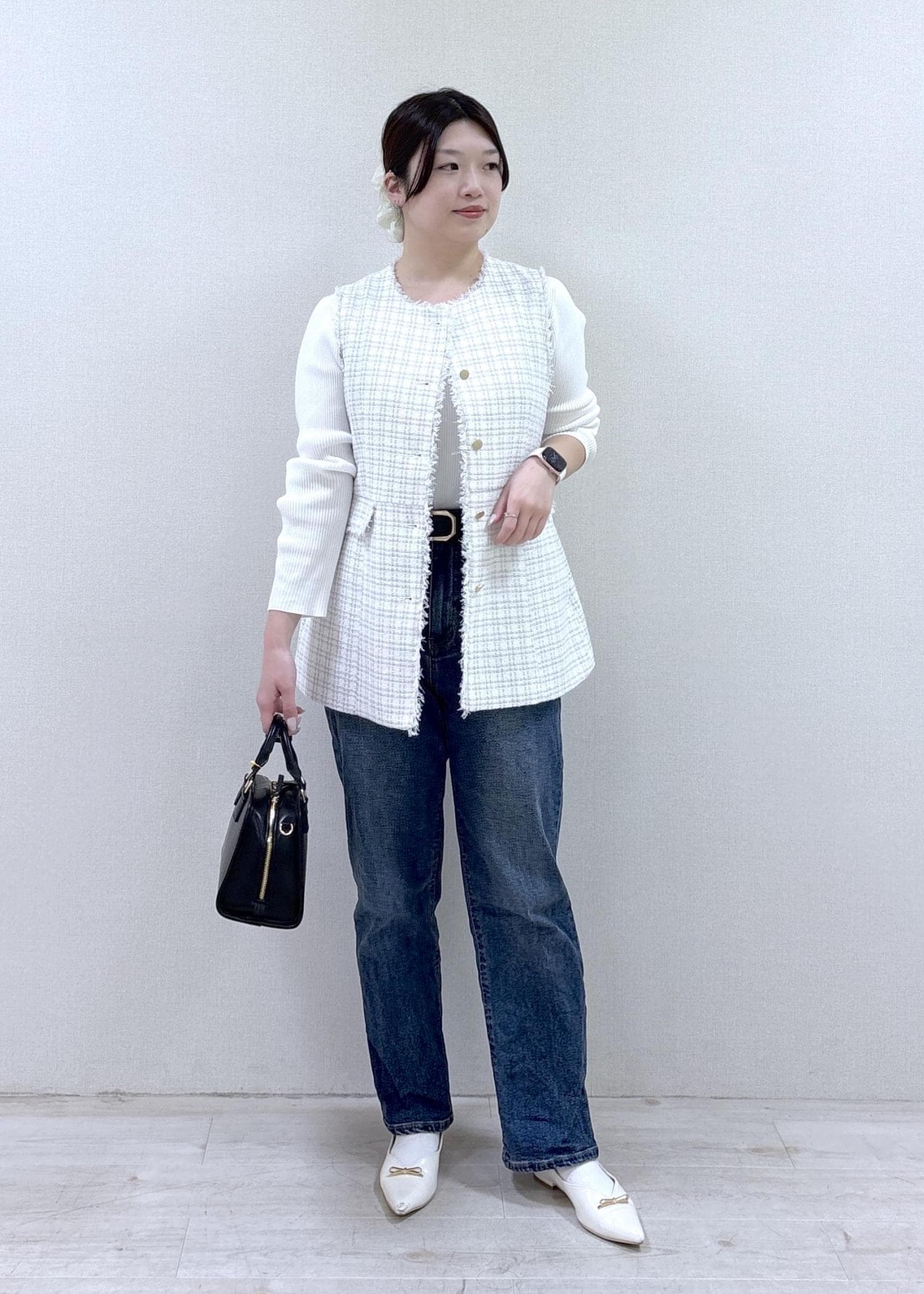 ツイードジレにデニムを合わせて、大人カジュアルなコーデにしてみました!