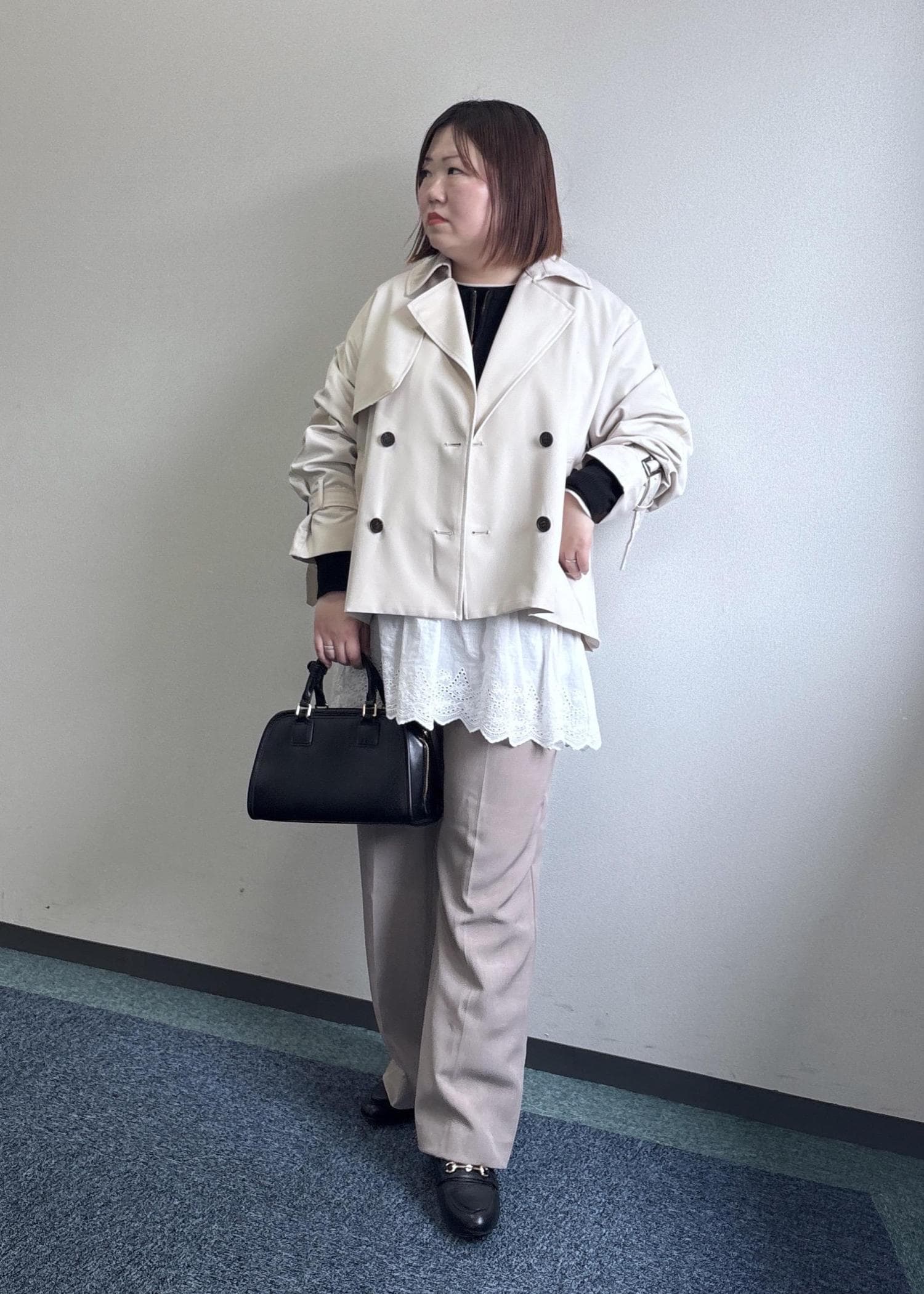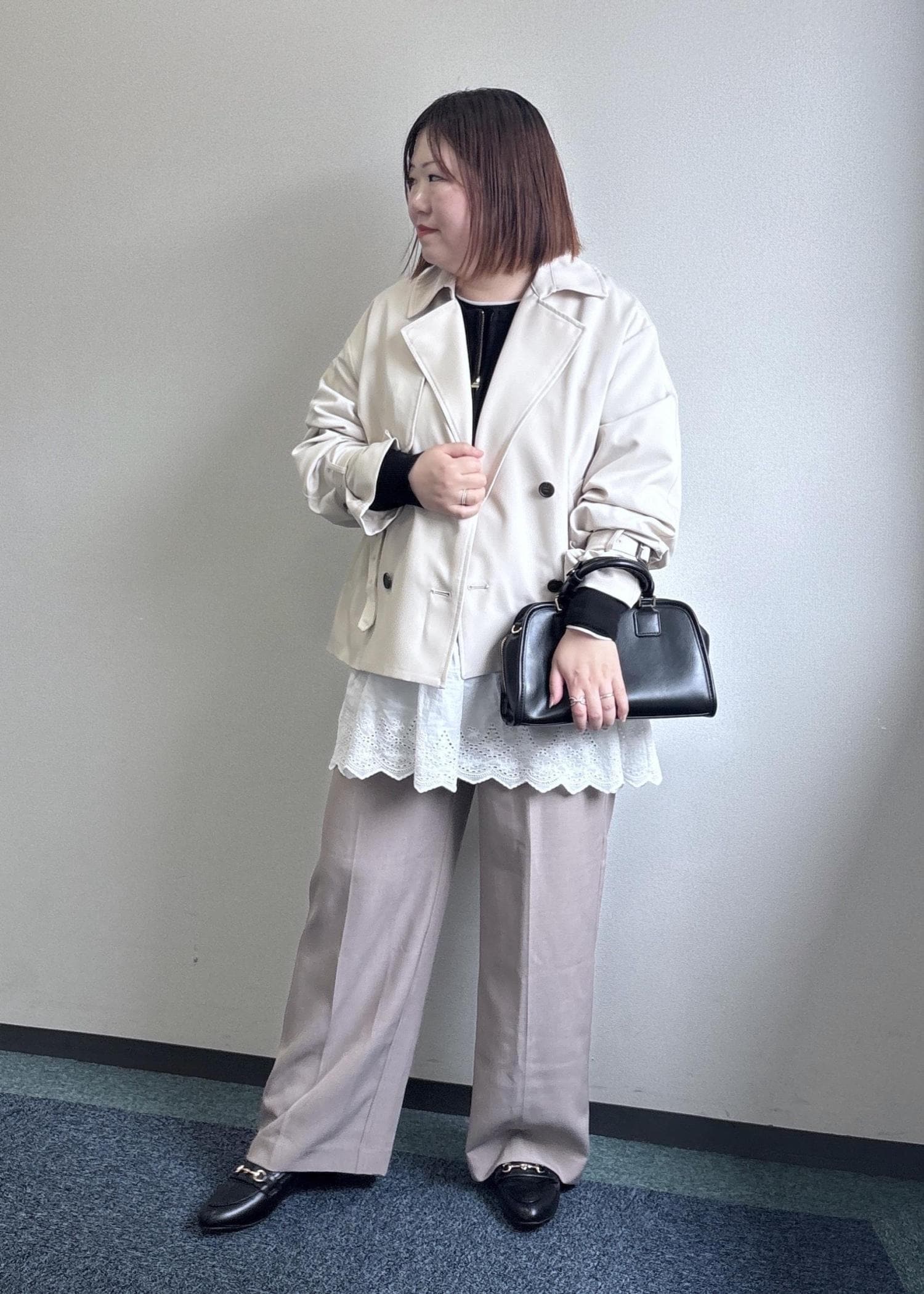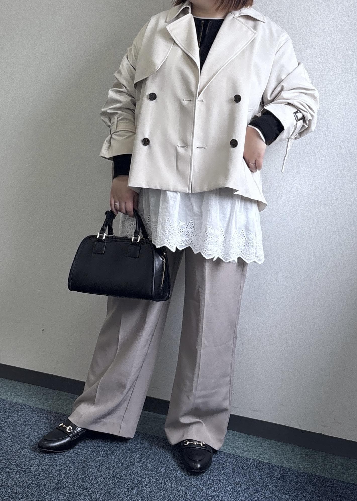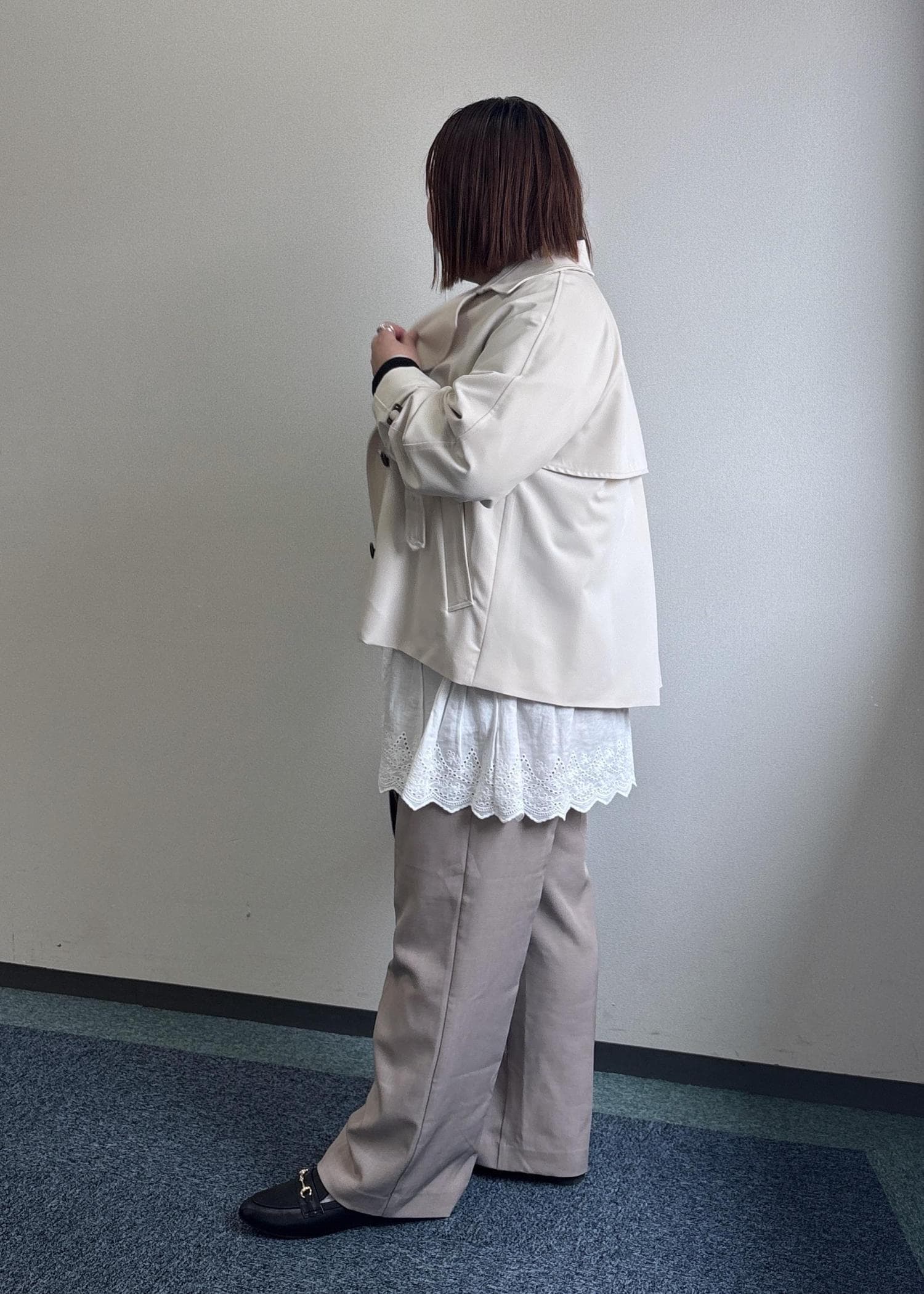 ショート丈なのでパンツ、スカートどちらも合わせやすいです。 -