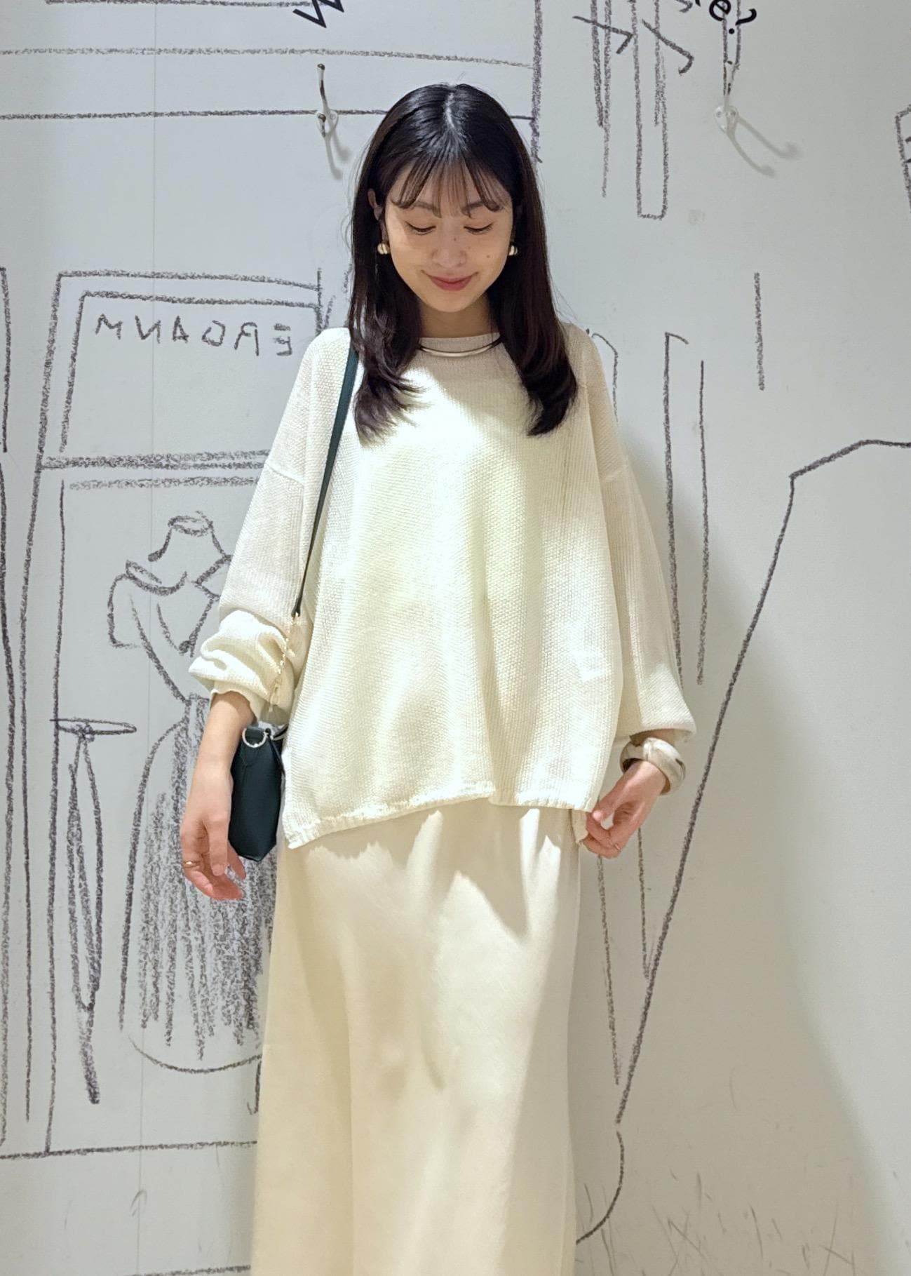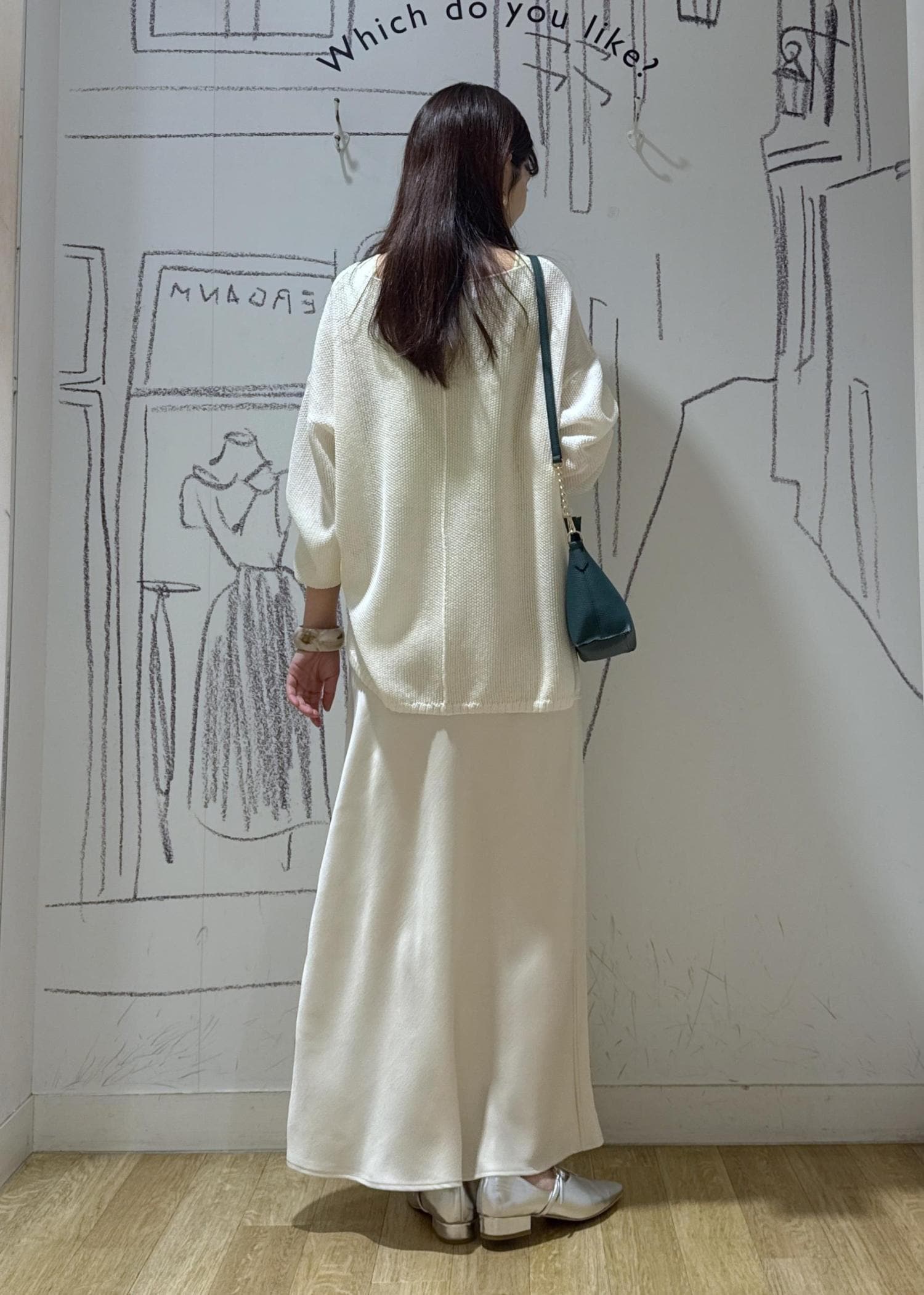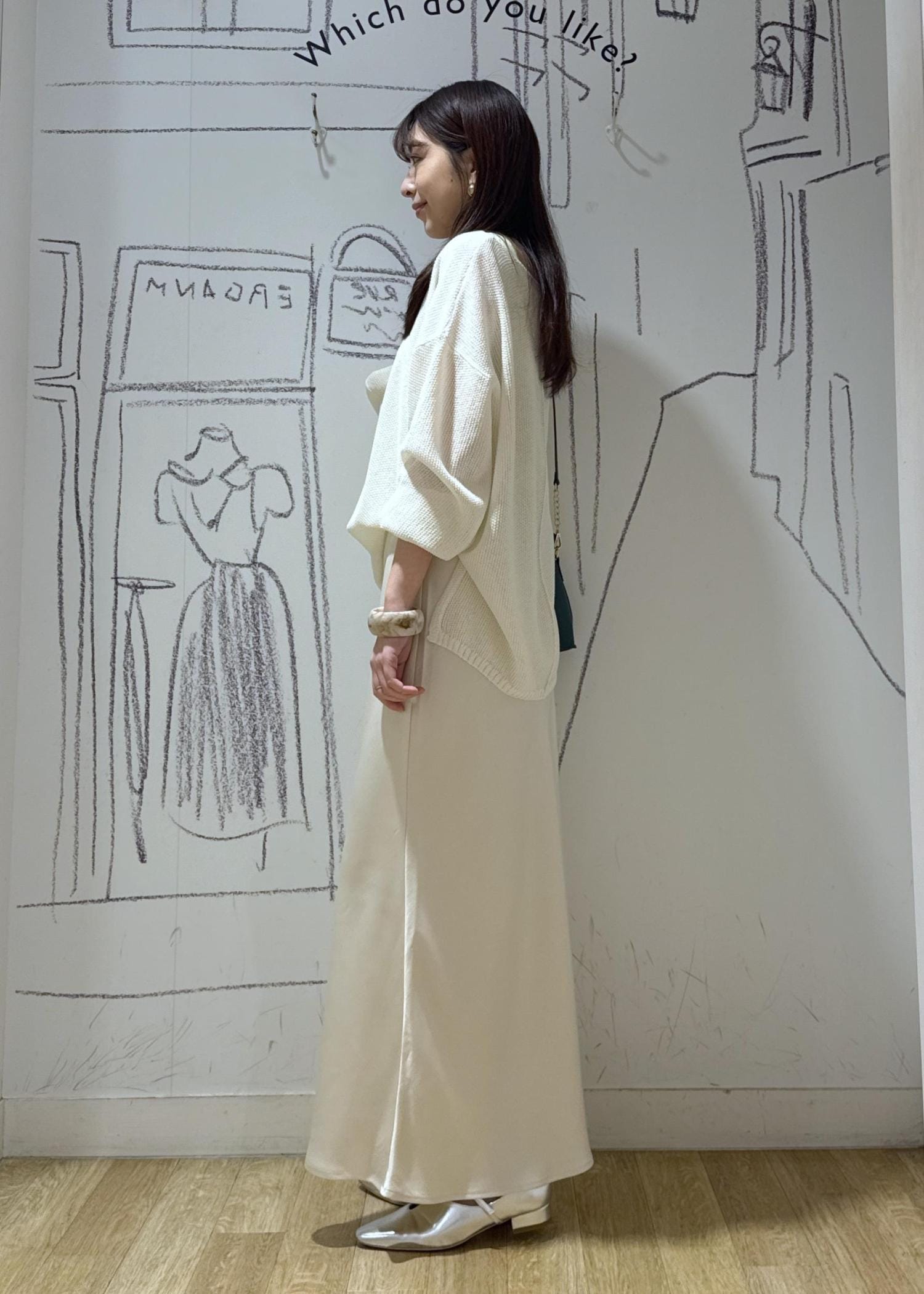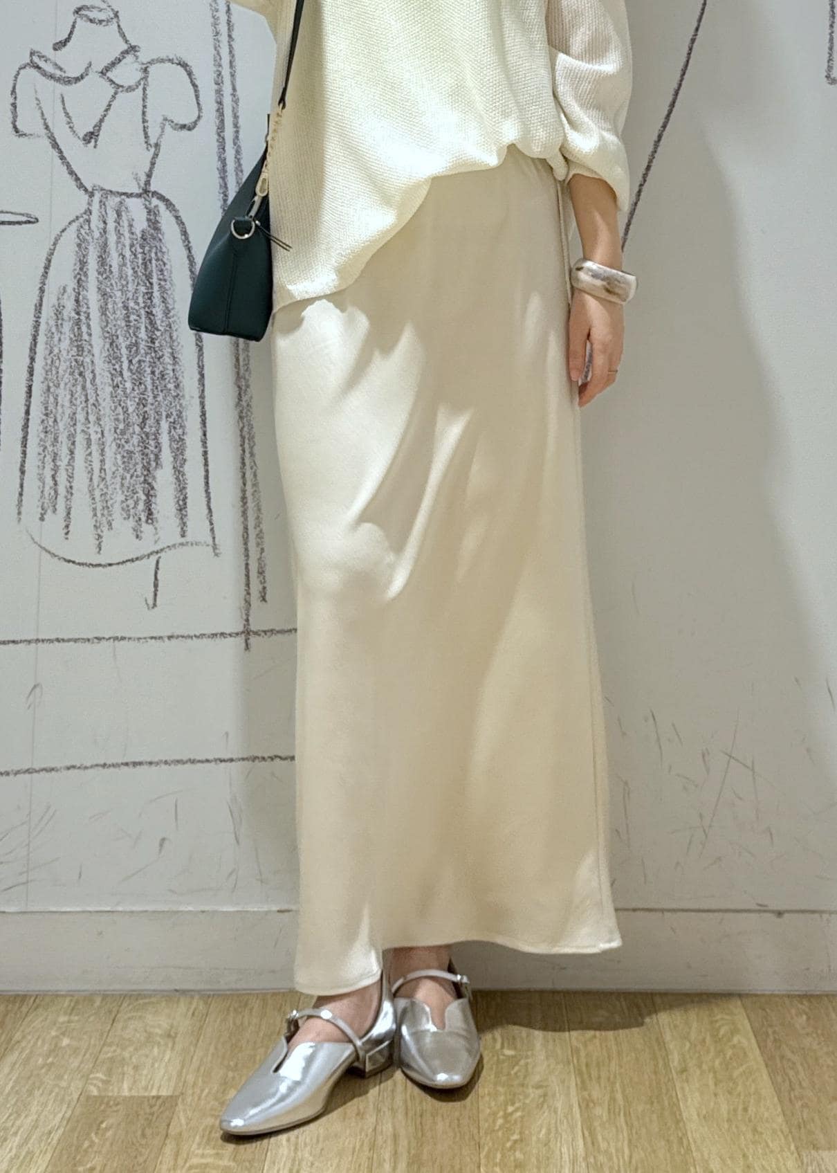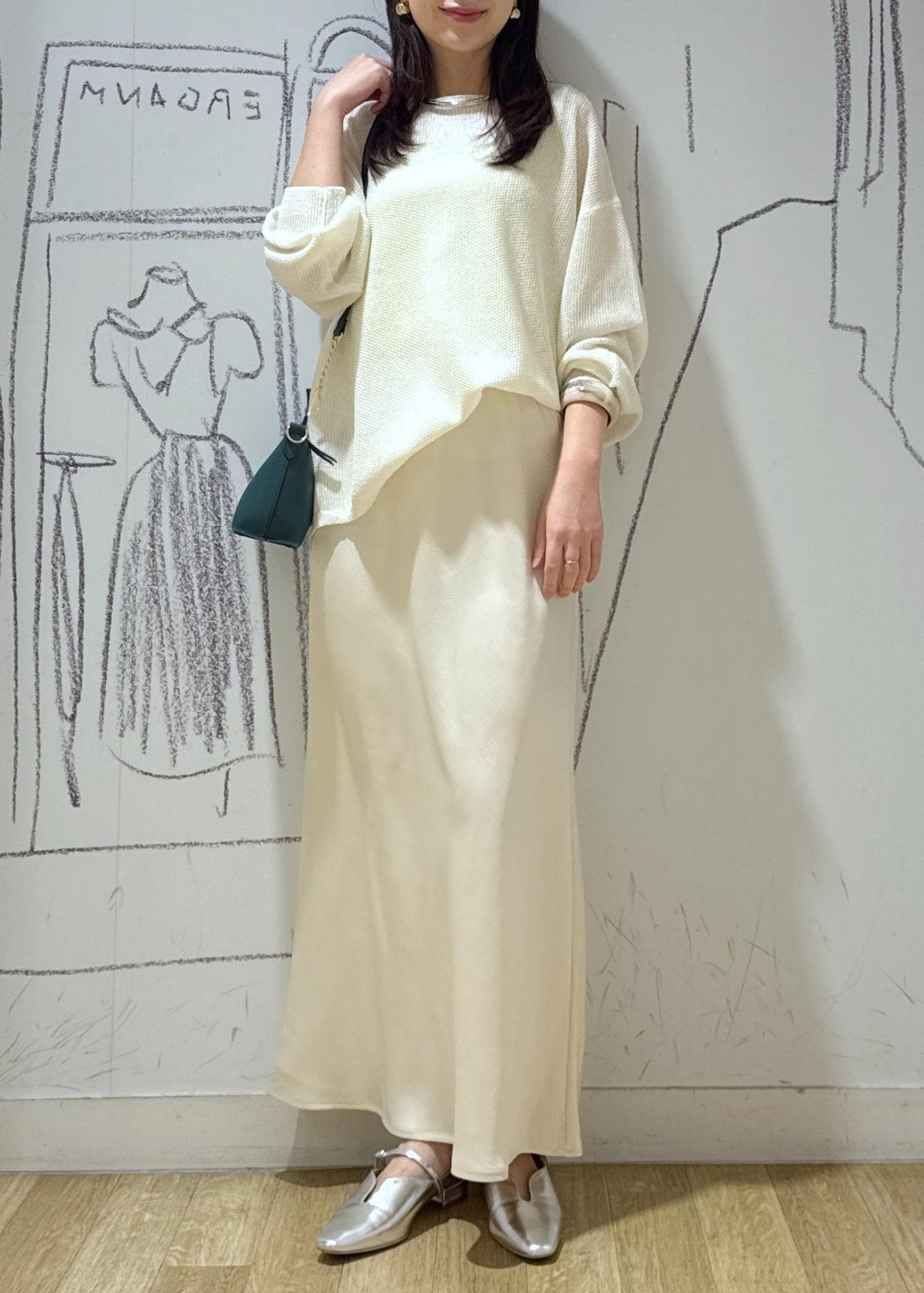 2BUY10%OFFROPÉ PICNIC細見えバイアスサテンスカート/イージーケアオフホワイト / F¥6,490レビューインナーは若干響く為、チュニック丈のトップスを合わせるかペチパンツなどを履くと安心です。着丈はくるぶしが隠れる長さです。ストンと落ちるシルエットが女性らしく素敵です。