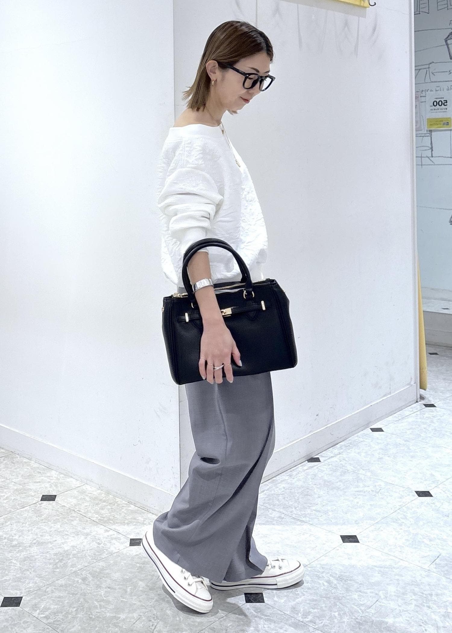 シンプルな中にデザイン性があり大人のカジュアルスタイリングにおすすめ。