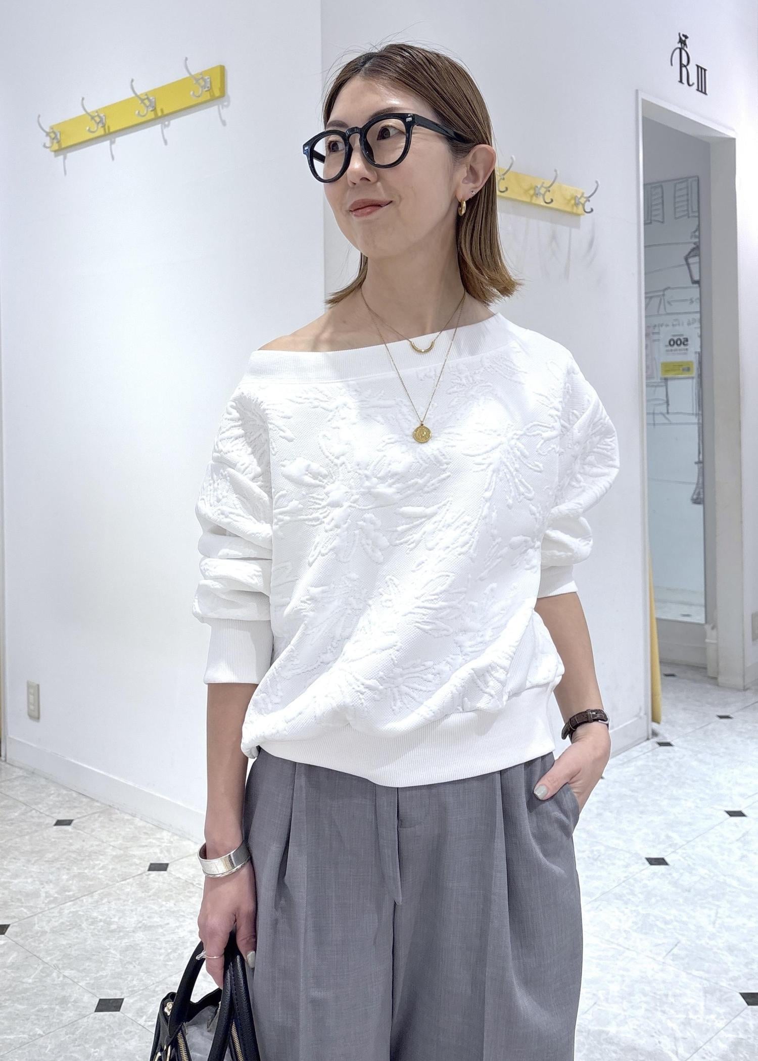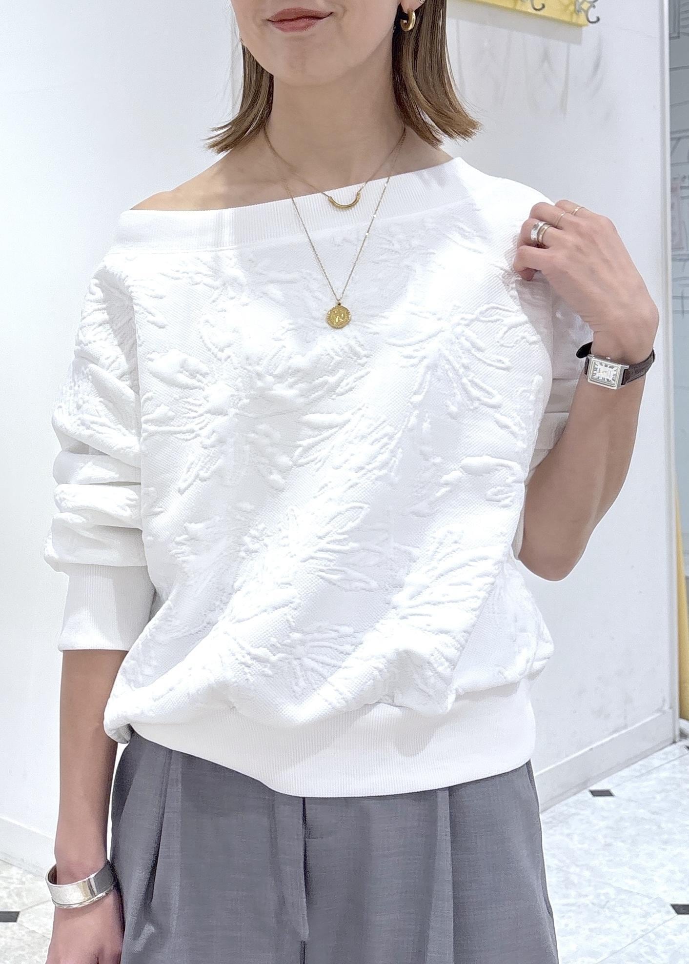 2WAYボートネック花柄ふくれジャガードプルオーバー