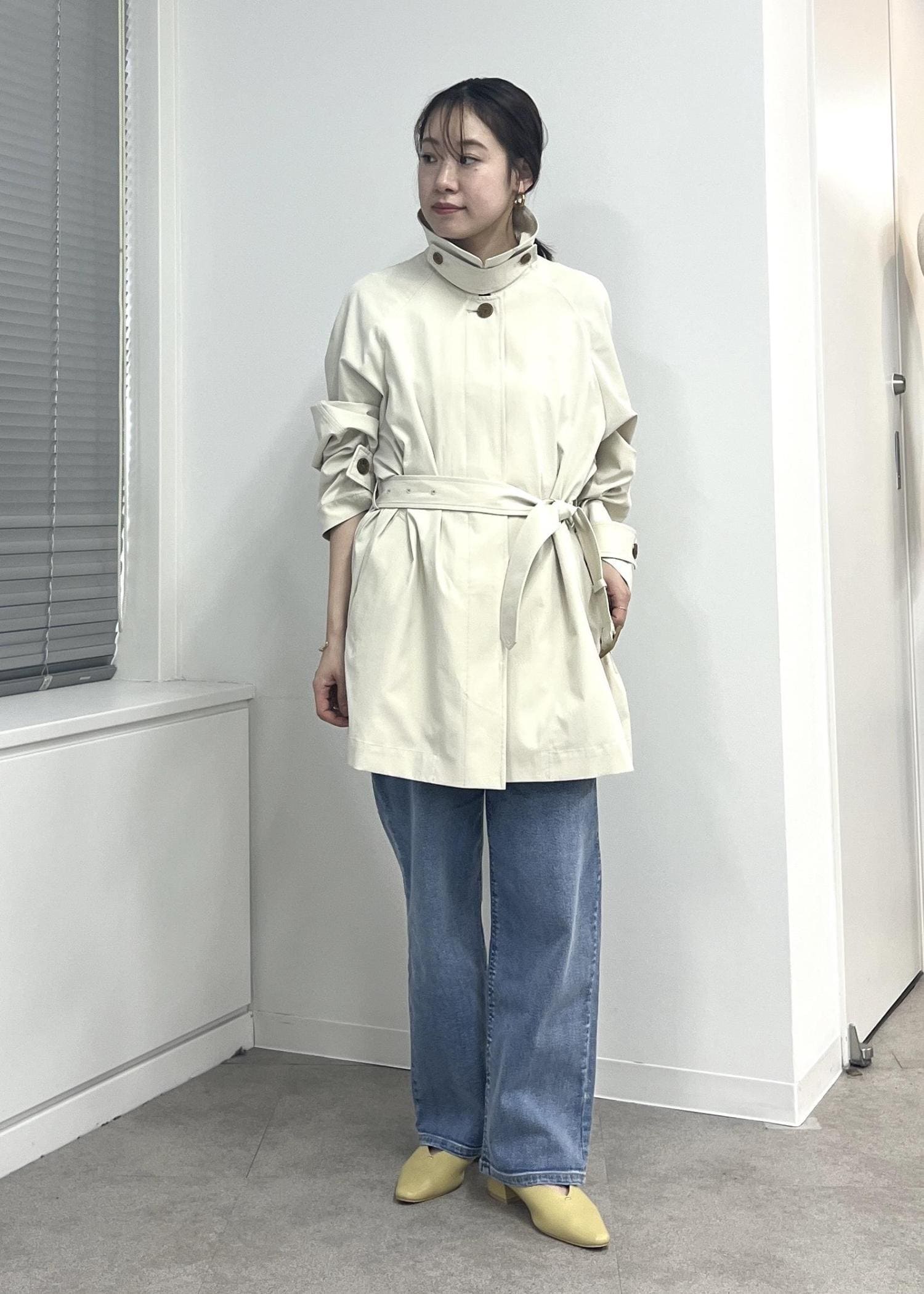 NEW!ROPÉ PICNICミドル丈ステンカラーコート/花粉ガード・撥水ベージュ / F¥13,200レビュー薄手の軽い素材のアウターです。