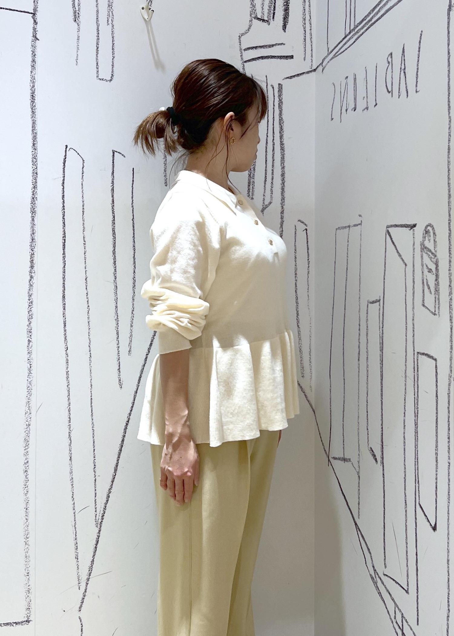 ROPÉ PICNICペプラムポロカラーニットオフホワイト / F¥4,391レビューソフトな素材で着心地最適です。お尻に掛かる着丈、袖丈はやや長めですがそれもまた可愛く魅力的な一枚です。