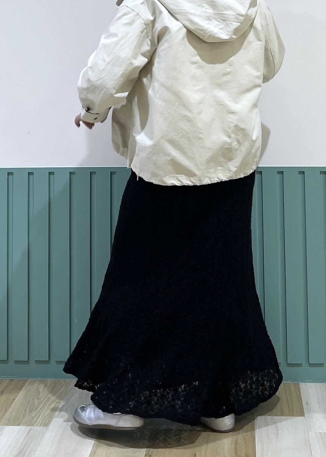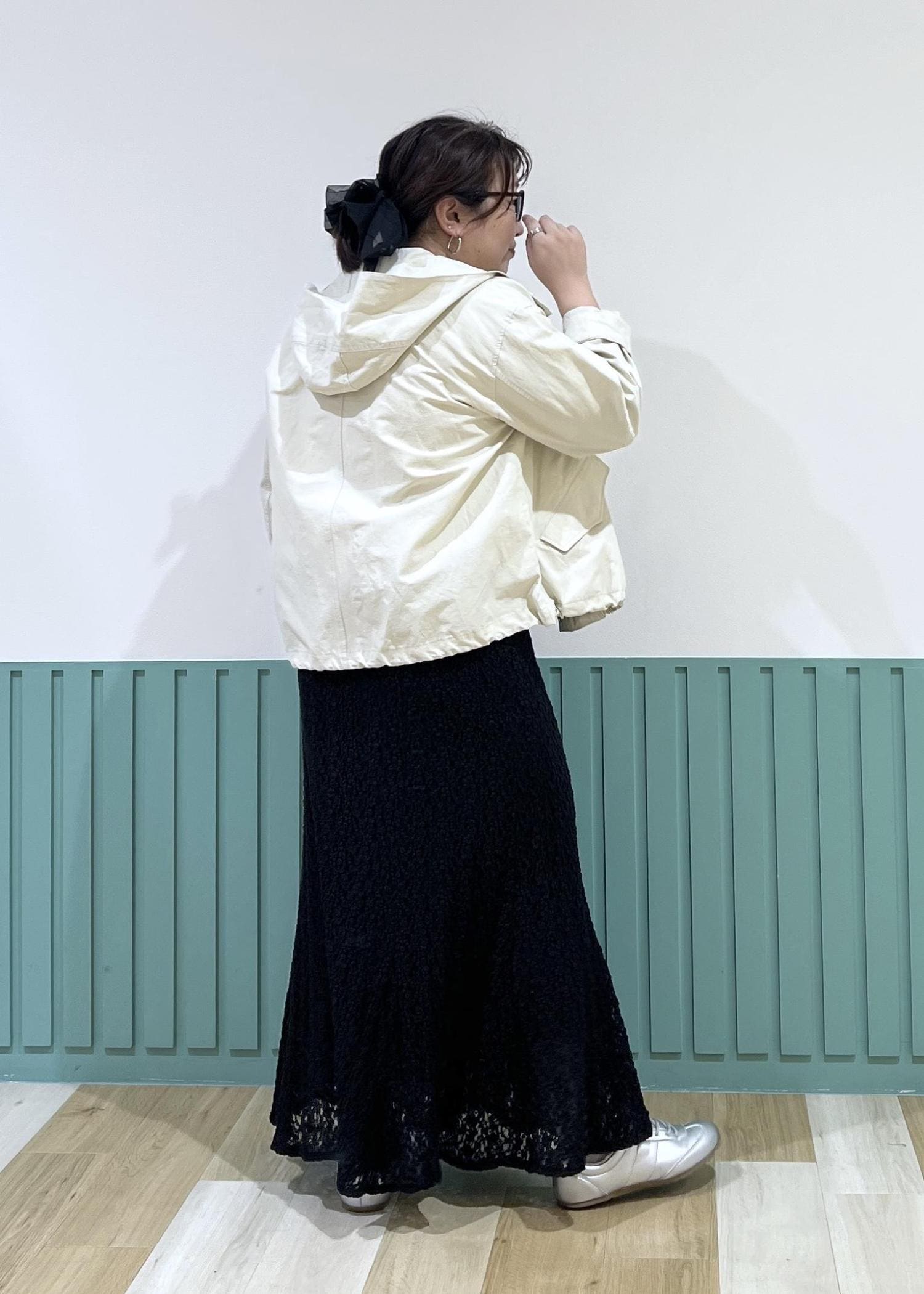 マウンテンパーカーとレーススカートの