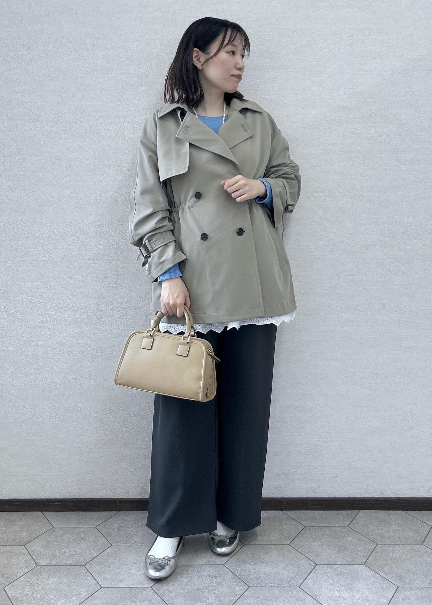 2BUY10%OFFROPÉ PICNICミドル丈トレンチコート/花粉ガード・撥水カーキ / F¥13,200レビューおしりがすっぽり隠れる丈ですので、安心感があります◎