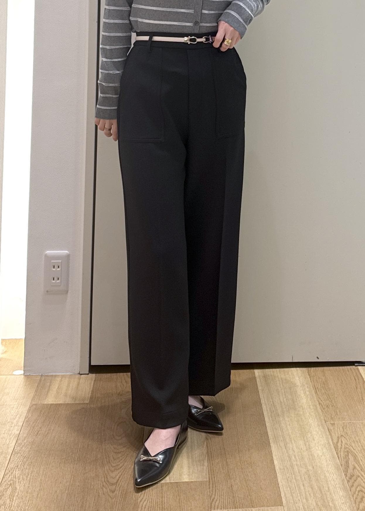 ベーシックカラーで色物のトップスと合わせたり、オフィスカジュアルコーデにもおすすめ◎ -