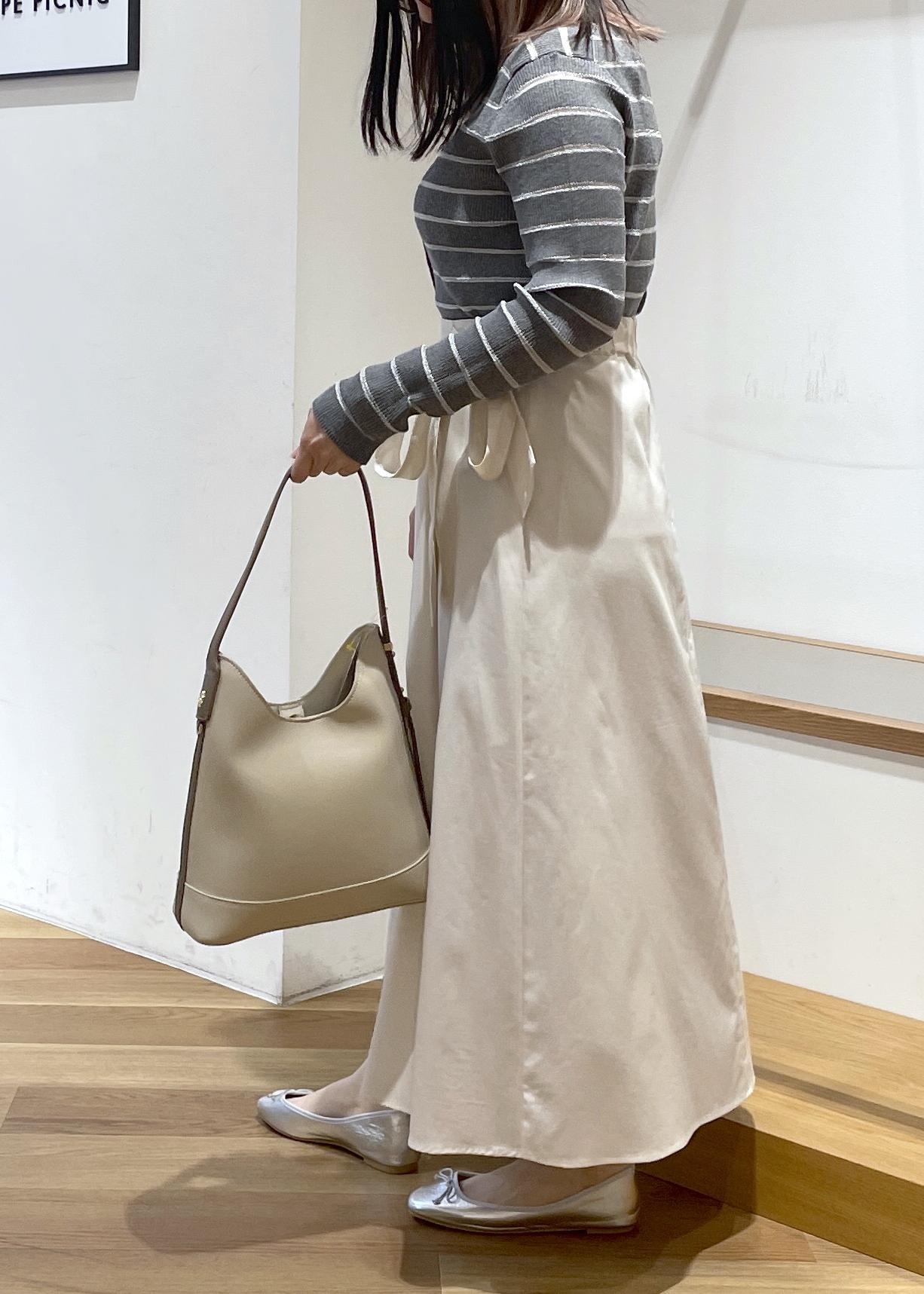 ウエストのリボンはボリュームもありポイントになります。柔らかな素材感で動きやすいです。