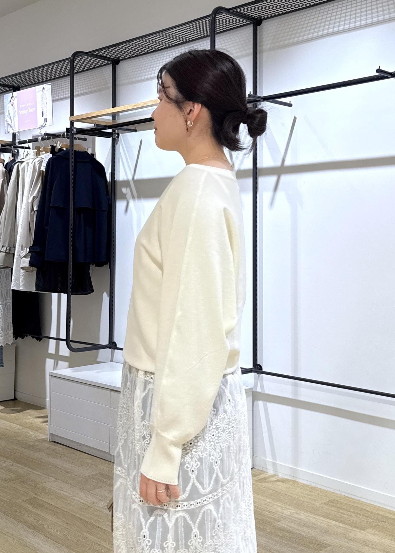 程よくゆとりあるので重ね着してももこもこしにくいです。レースの柄も大人なデザインなので、甘くなりすぎずきれいめ、大人カジュアルコーデにもおすすめです◎ -