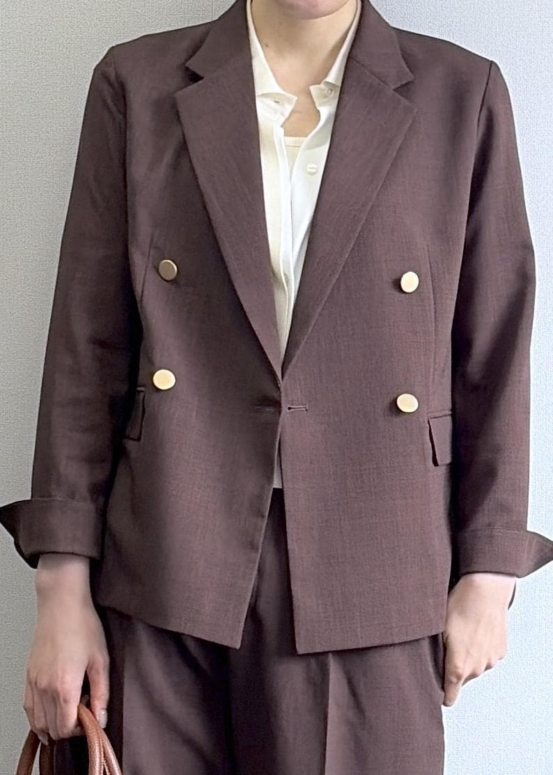2BUY10%OFFROPÉ PICNICカナパ 金ボタンジャケット/セットアップ対応・UV・抗菌防臭・接触冷感ダークブラウン / L¥8,492レビュー腰回りまで長さがあり、ダブルの金釦がスタイリッシュで大人な雰囲気のジャケット。肩周りにゆとりがあるので動きやすくストレスフリーで着れます。