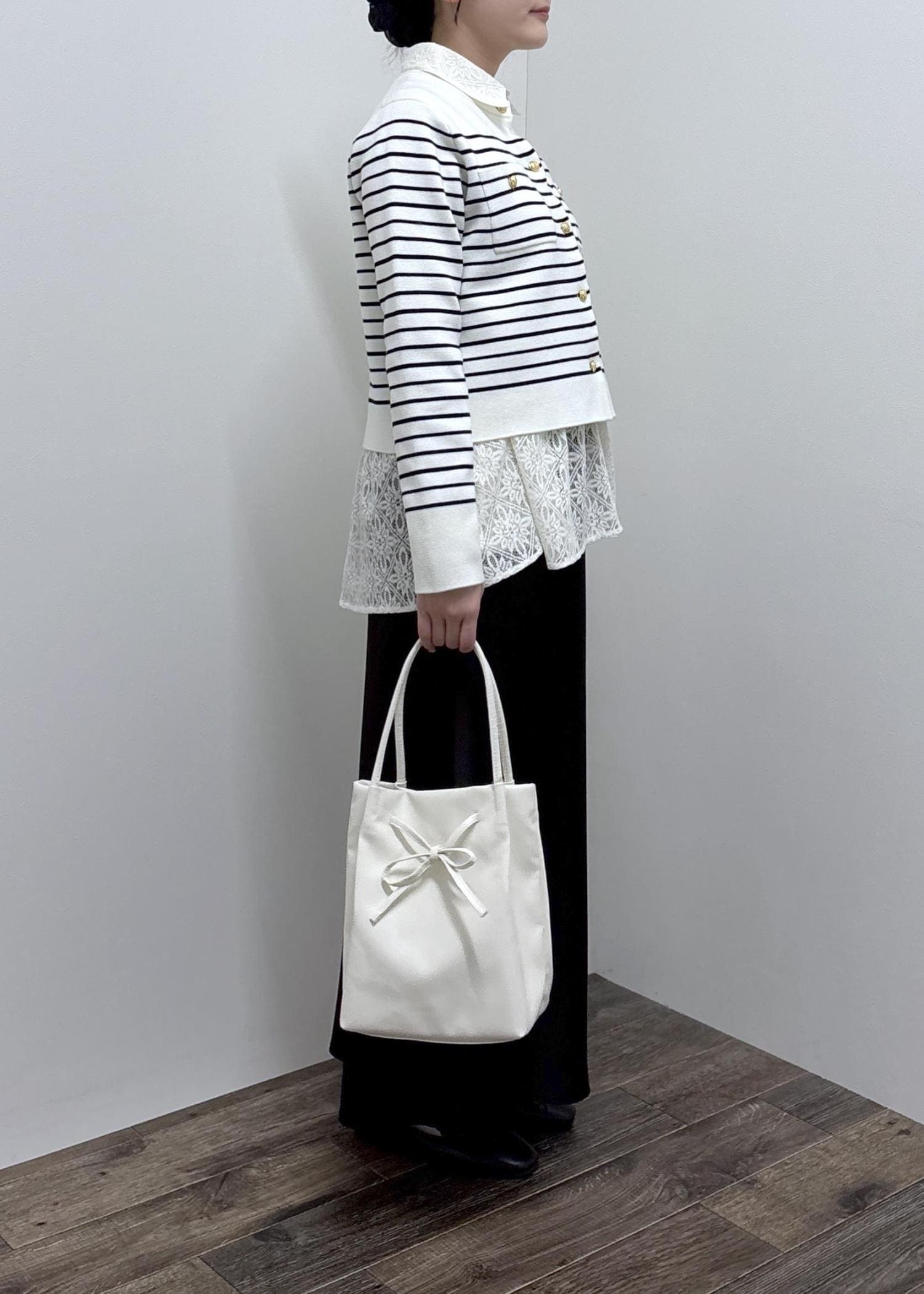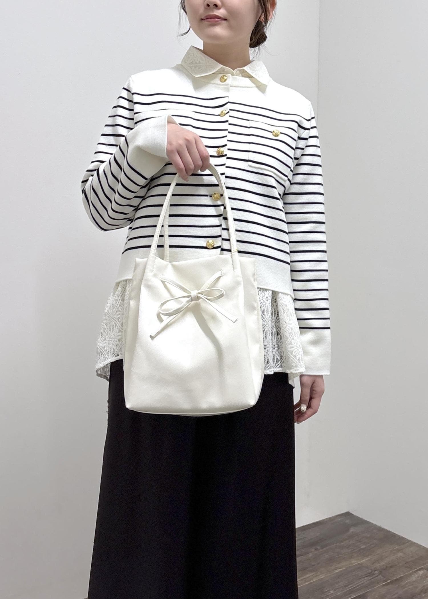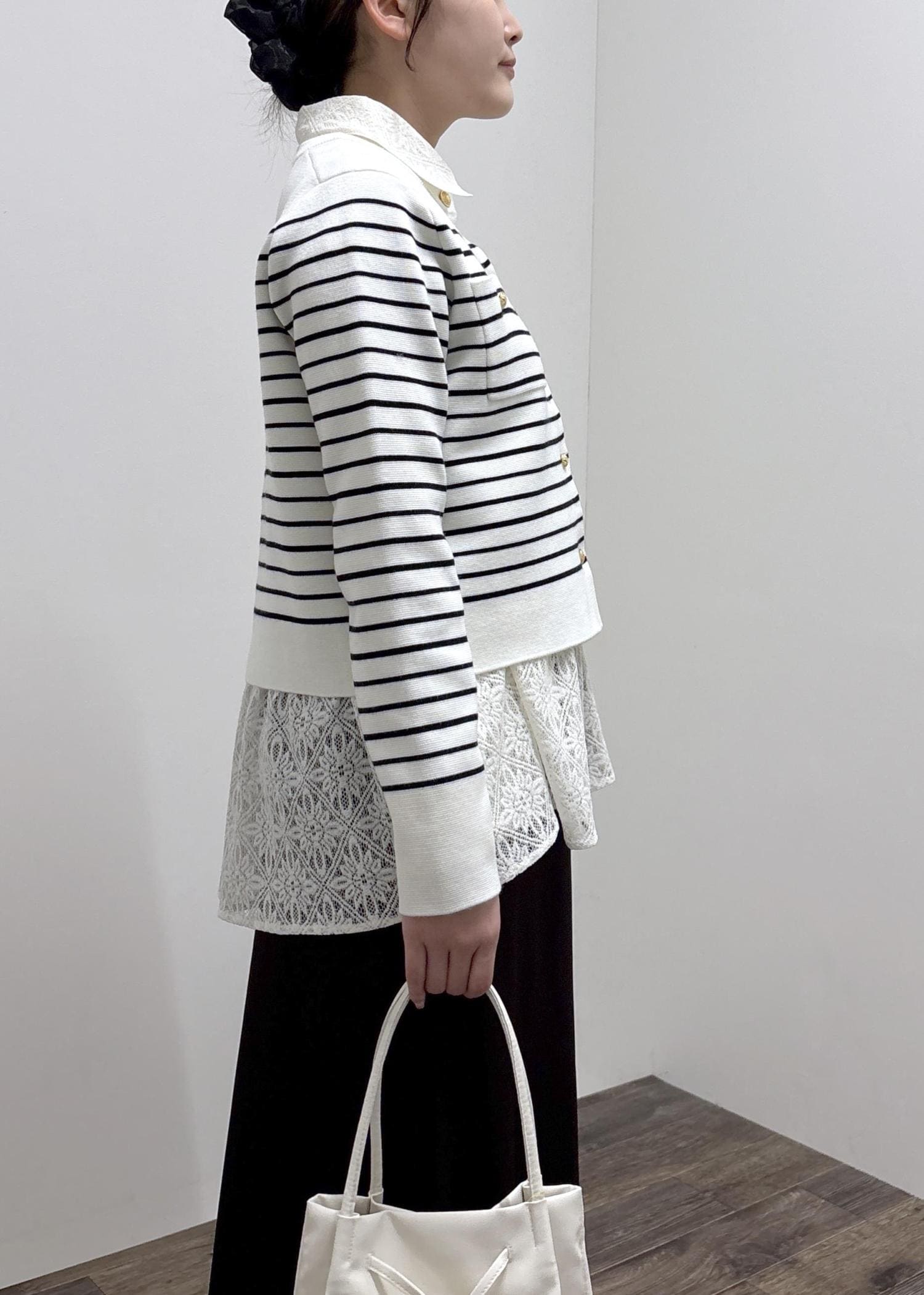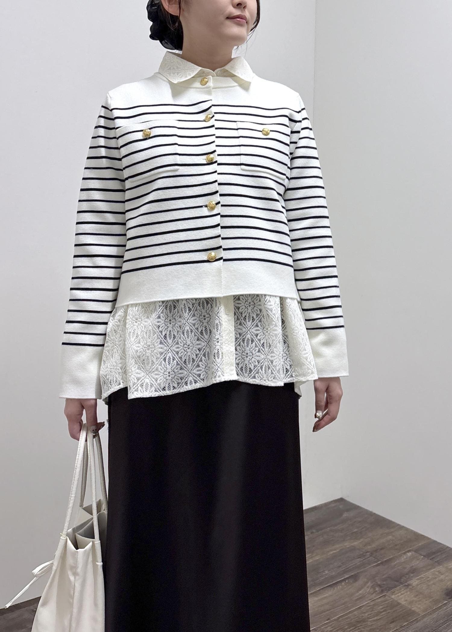 金ボタンが綺麗見えするので上品な印象になります。 -