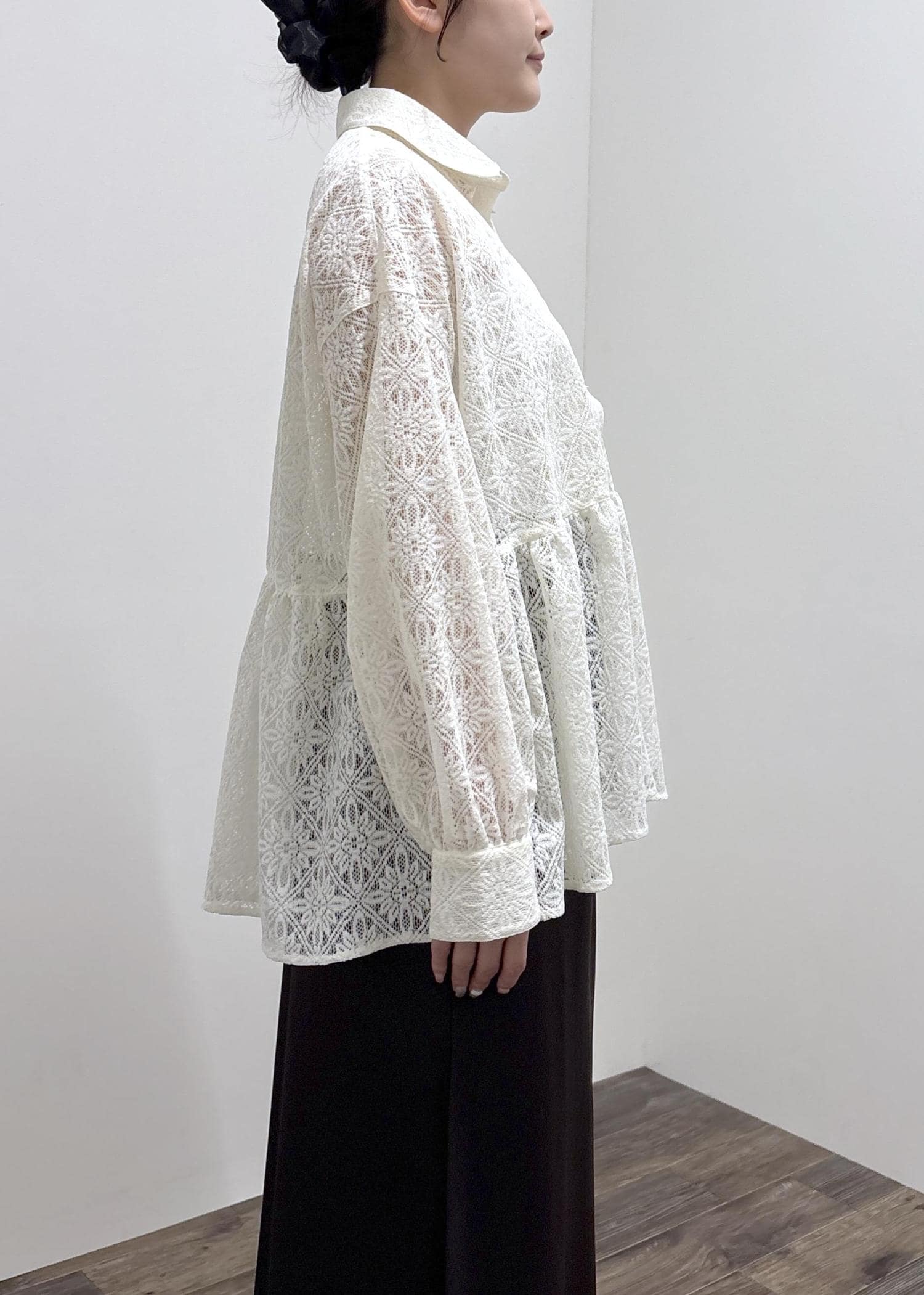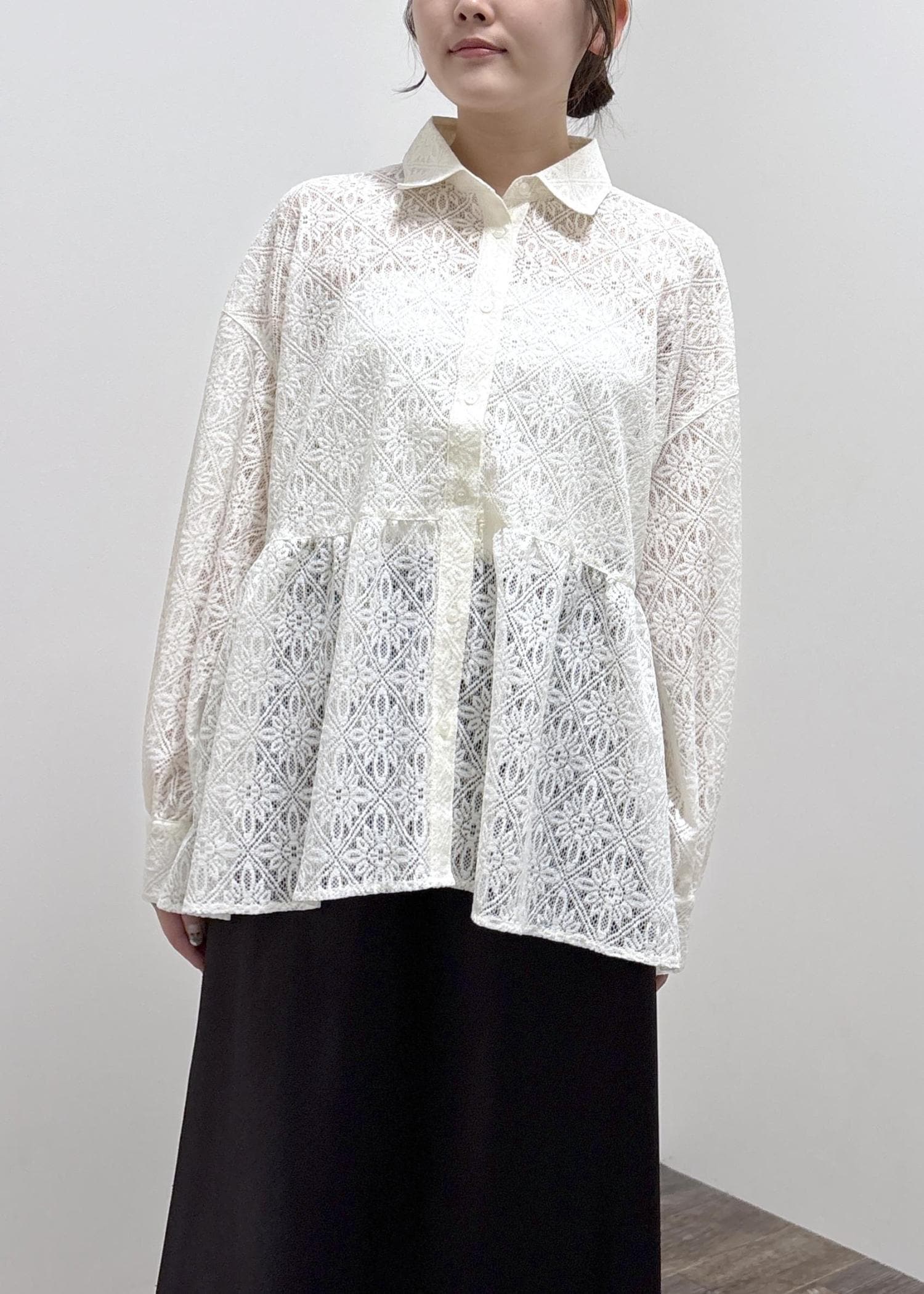 2BUY10%OFFROPÉ PICNICレースペプラムシャツブラウスキナリ / F¥6,490レビューレースのペプラムシャツです。