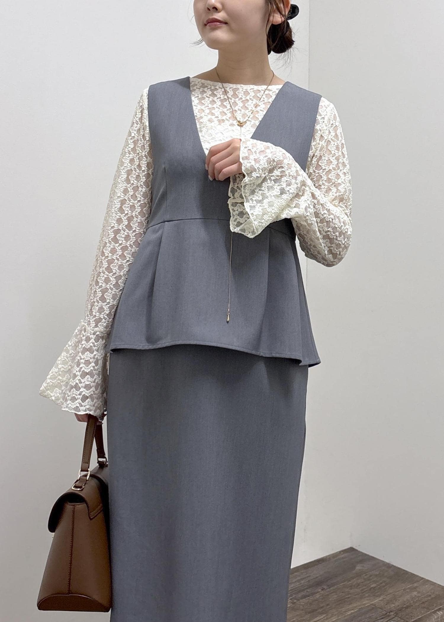 2BUY10%OFFROPÉ PICNICレイヤード風ペプラムジャンパースカートグレー / S¥7,197レビューウエスト位置にペプラムデザインがくるとってもシルエット良いワンピースです。