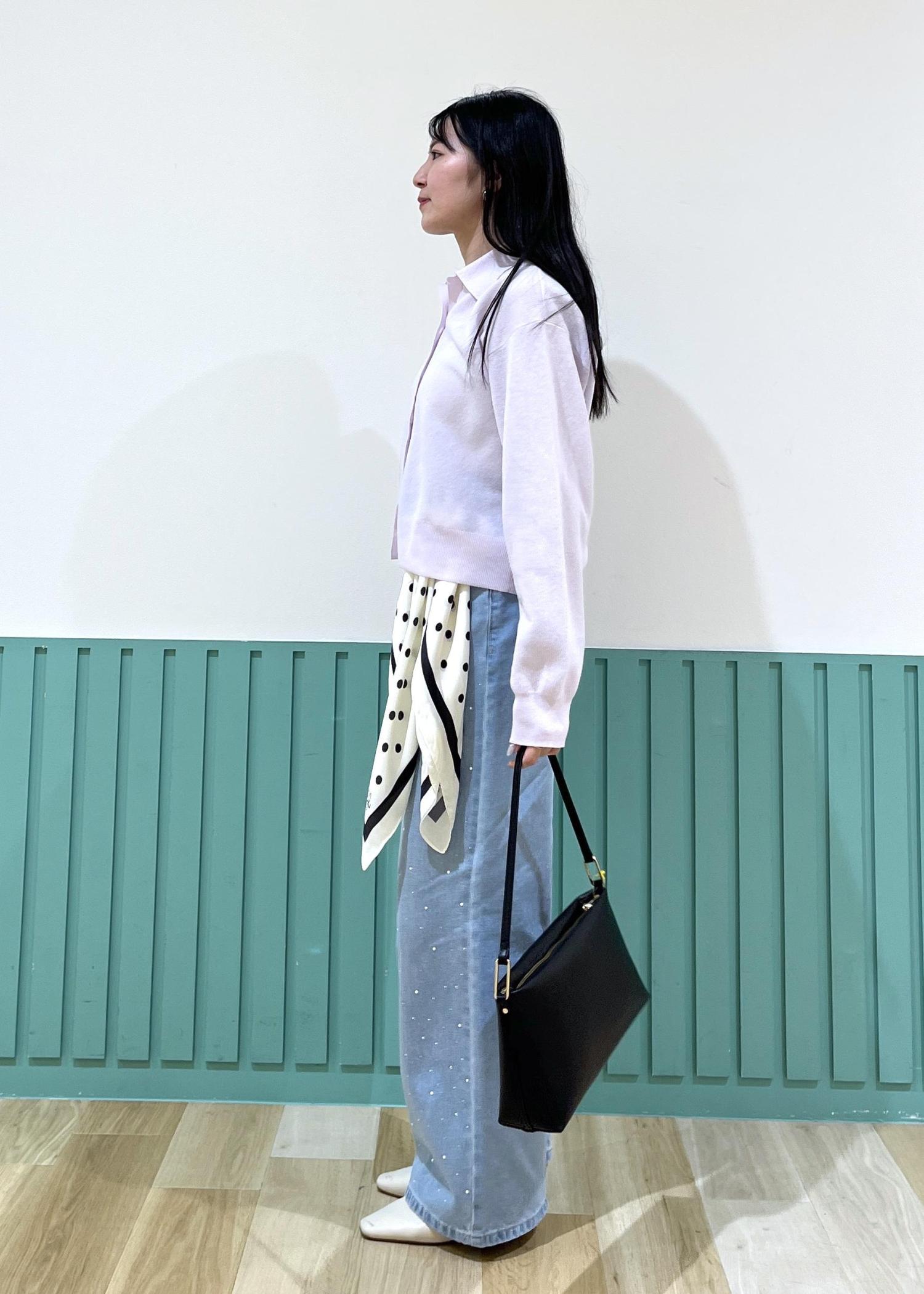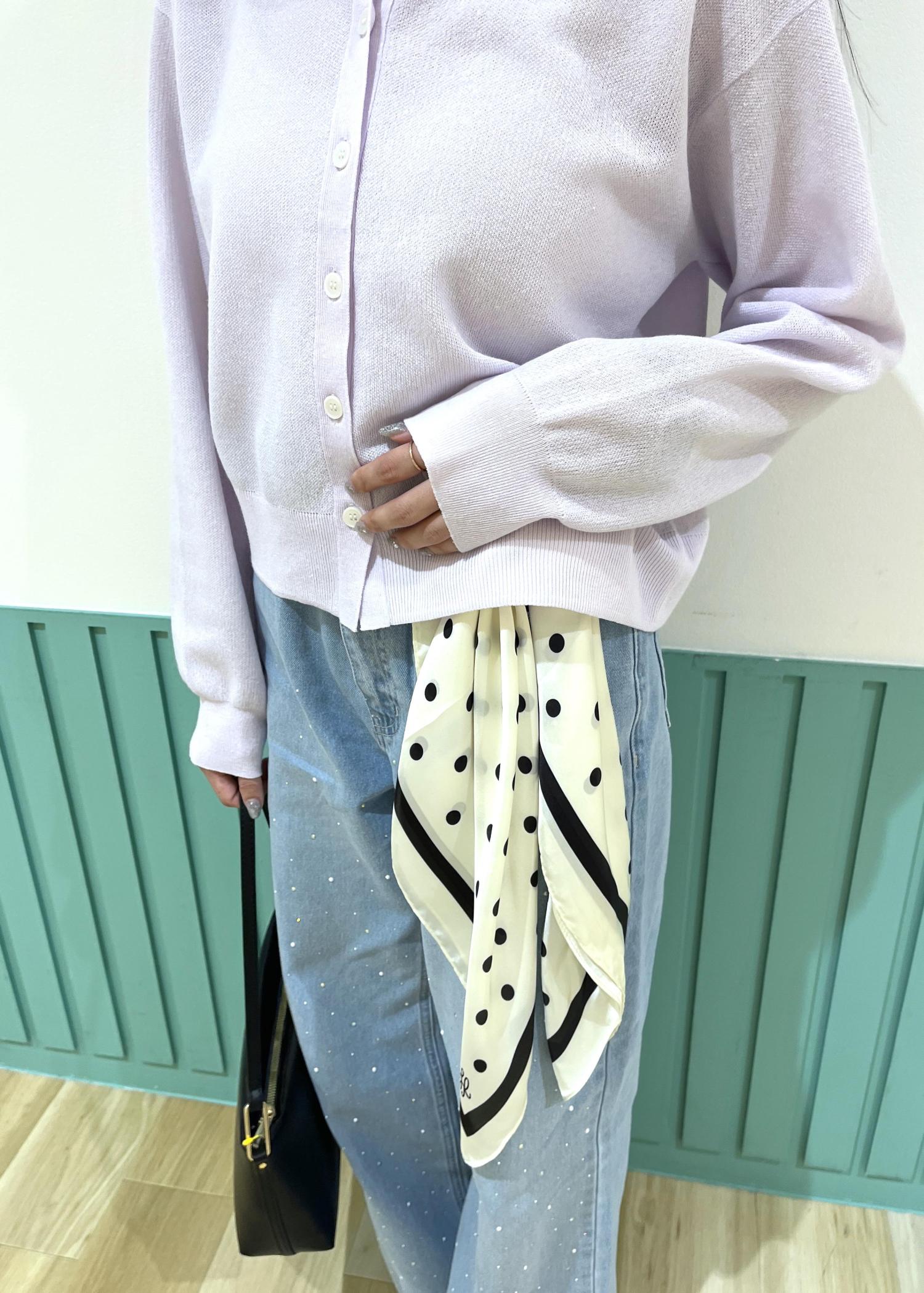 シンプルになり過ぎないようにドット柄のスカーフを取り入れました!