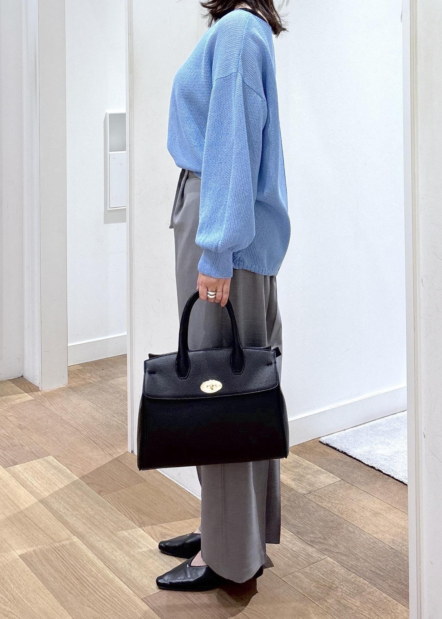 マチが広く、収納力も◎。上が閉まるのも安心感があります。 -