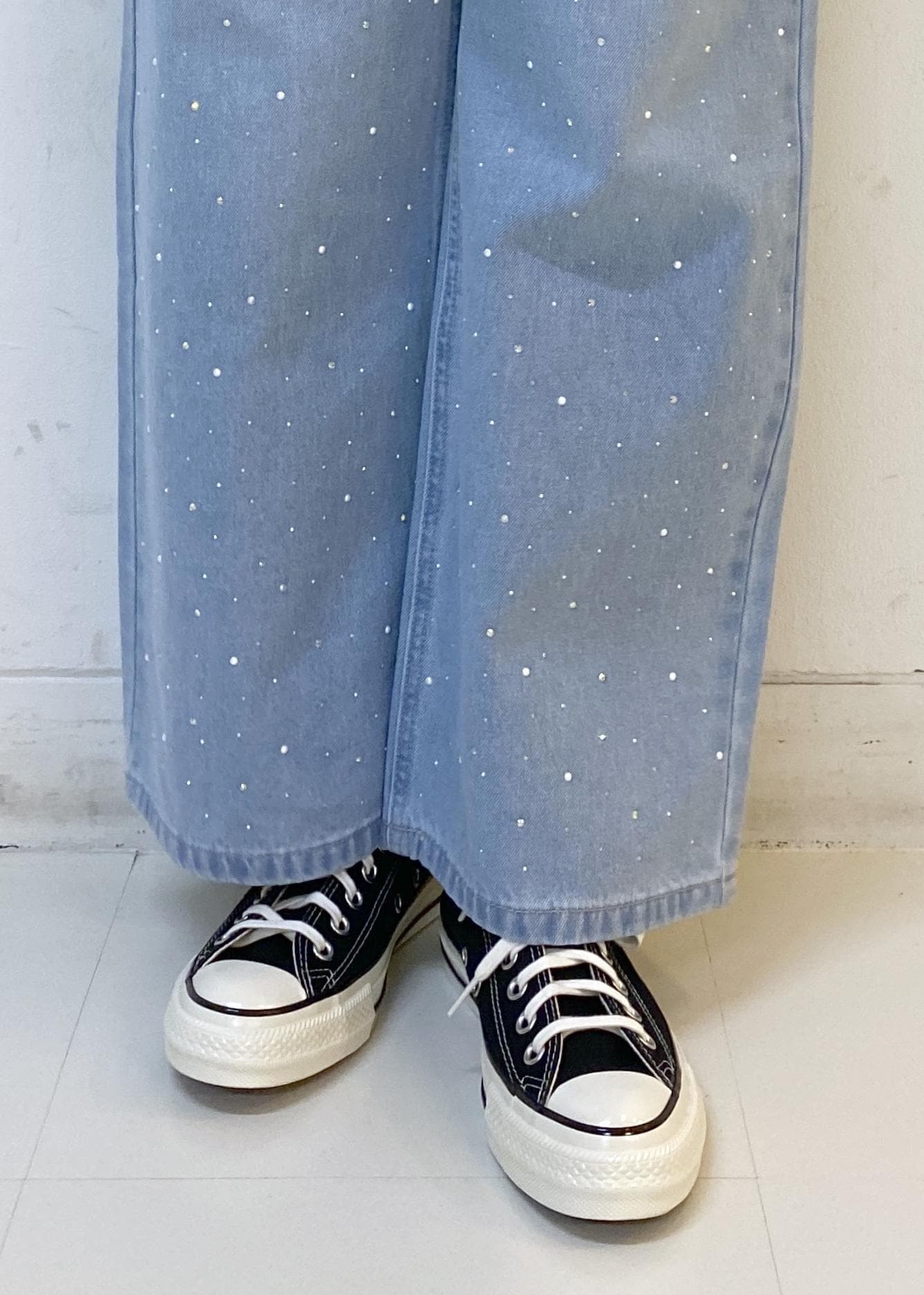 デニムはビジュー付きのデザインで遊び心をプラス。