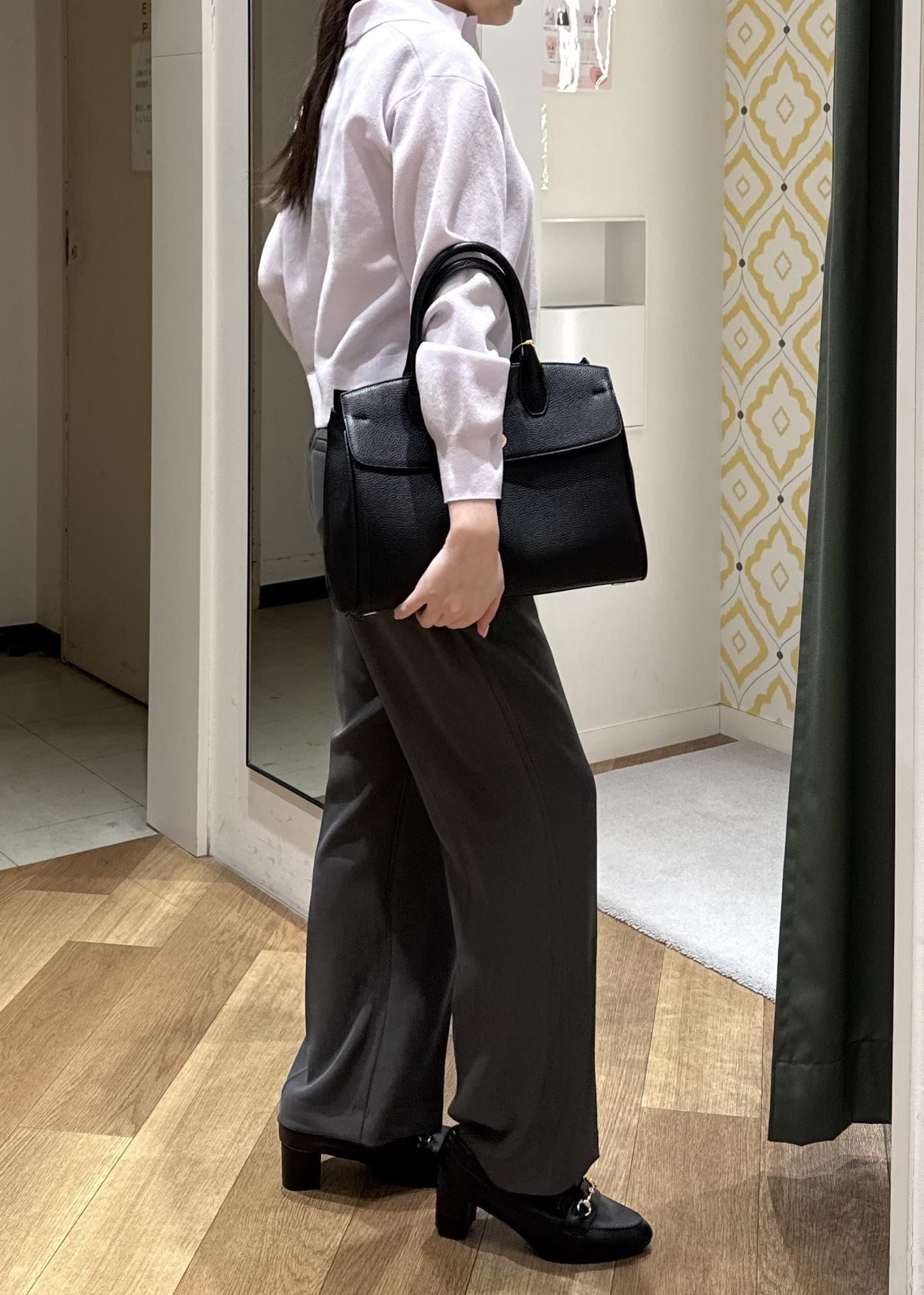 バッグとシューズはブラックを選び、統一感ときちんと感を出しました。