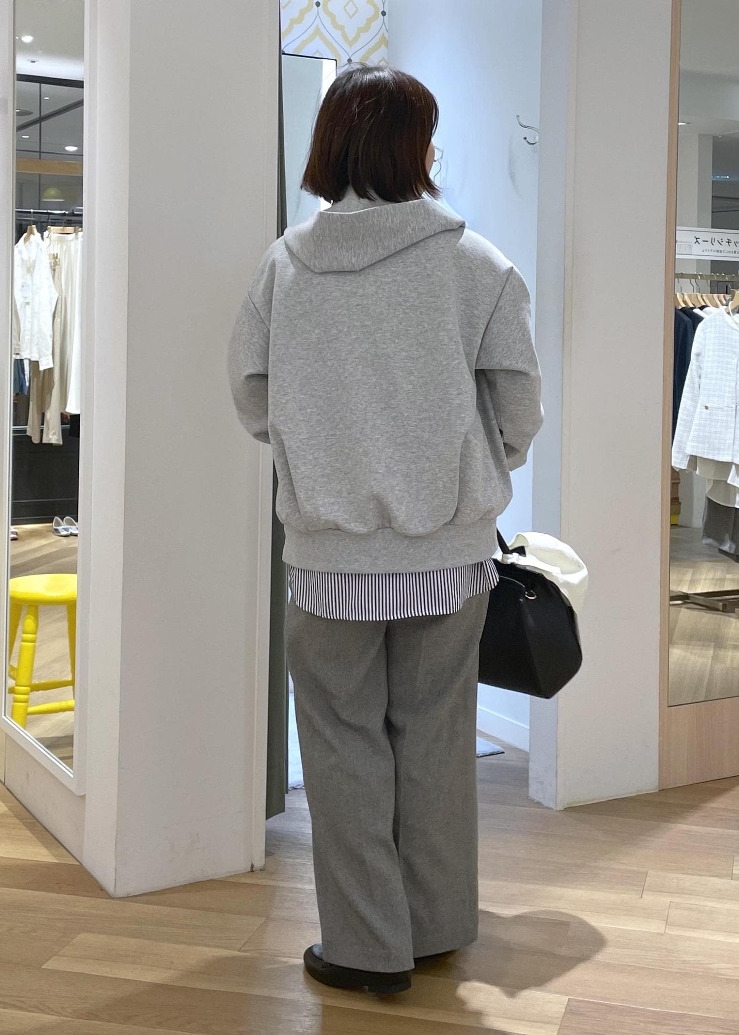 ROPÉ PICNICコクーンシルエットダブルジップフーディライトグレー / F¥6,490レビューハリのあるふっくらとした綿混のダンボール素材で、肌触りが良く着心地も良いです。身頃はゆったりとしていますが、裾は絞られているのですっきりと着用できます。後ろにタックが入っており、コクーンシルエットが可愛いパーカーです。ダブルジップなので、上下少しずつ開けてあげると抜け感のある着こなしになります。