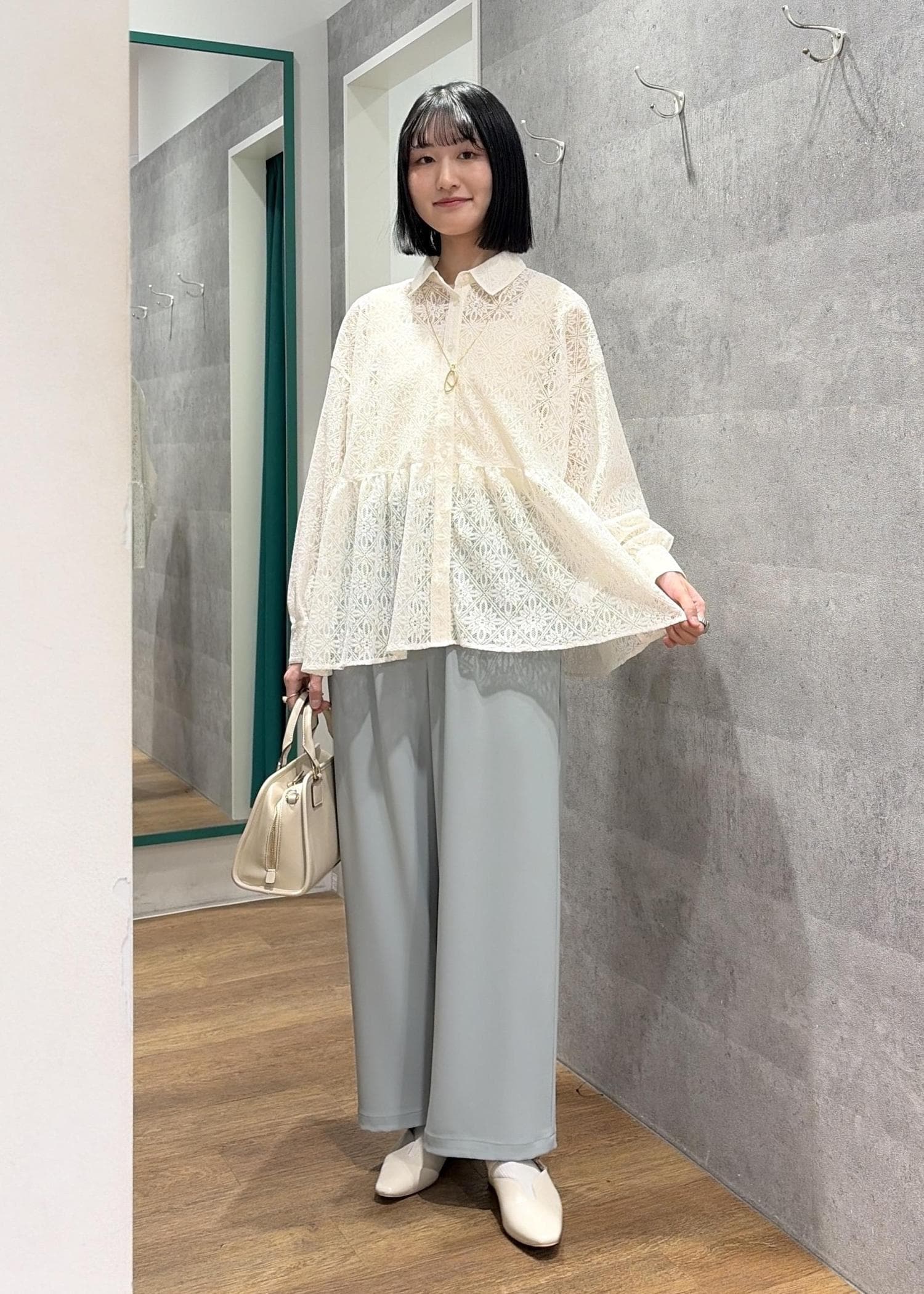 2BUY10%OFFROPÉ PICNICレースペプラムシャツブラウスキナリ / F¥6,490レビューシルエットがきれいなレースペプラムシャツ。