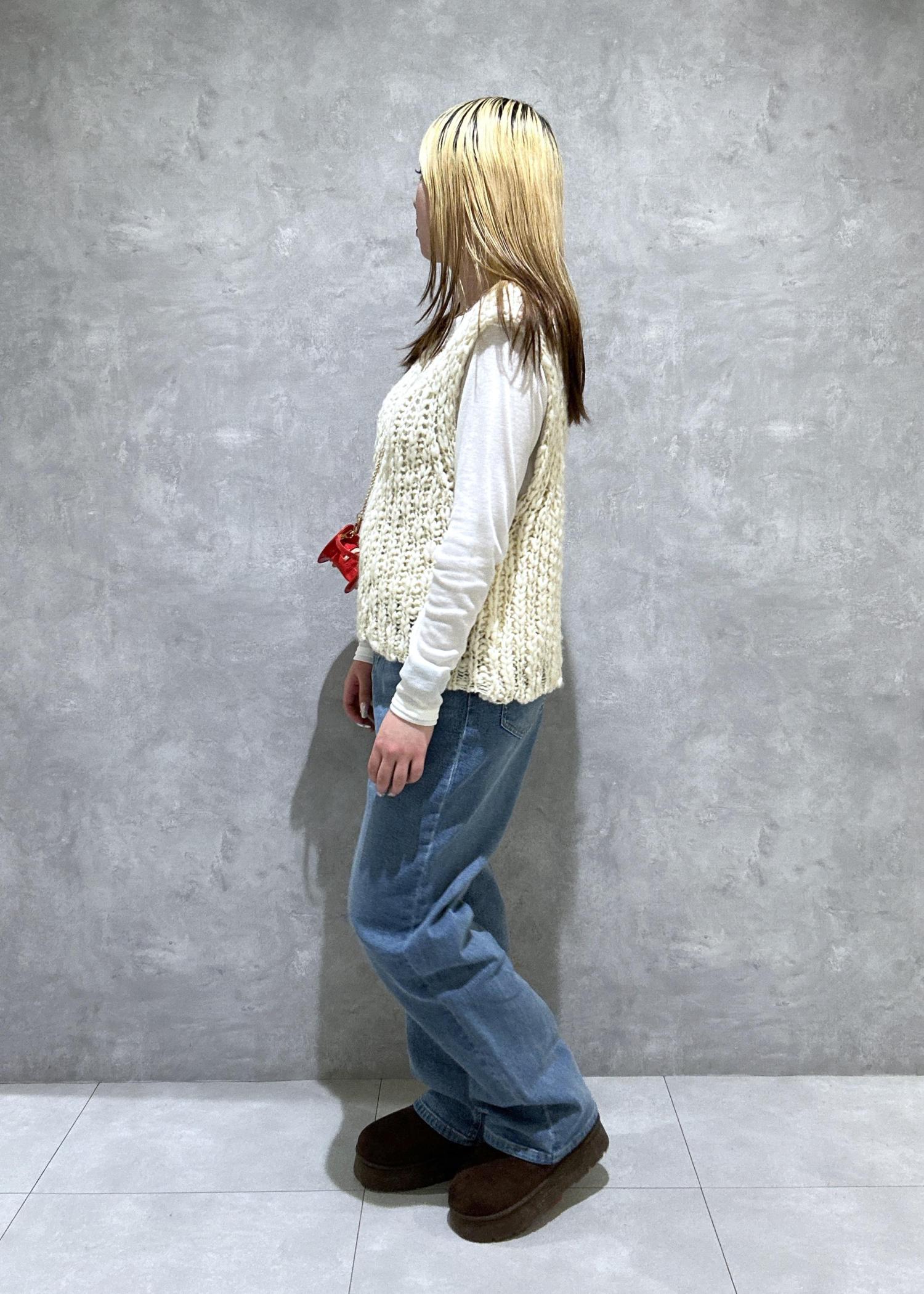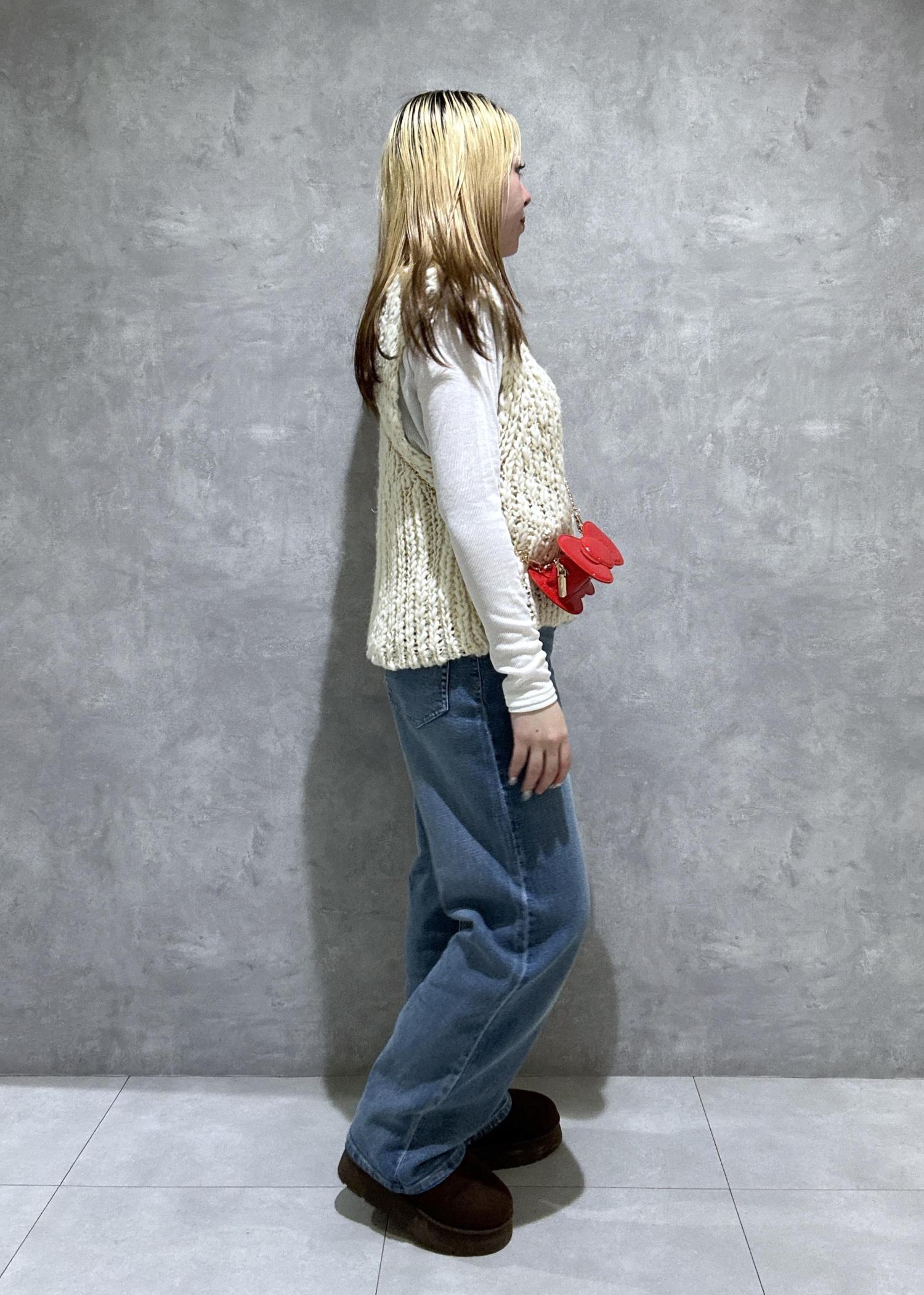 コーデのアクセントとしてキティバックを着用。シンプルコーデでも一気にかわいくコーデ。