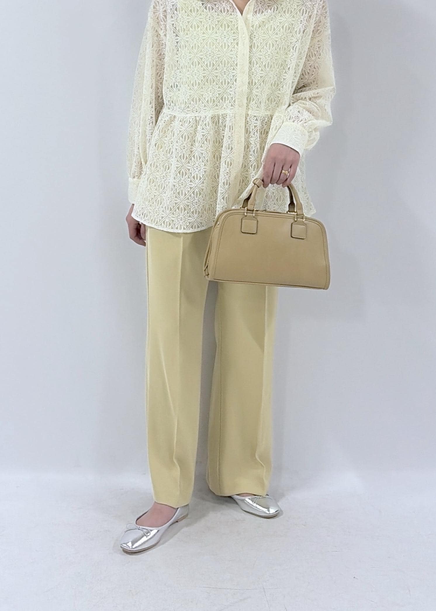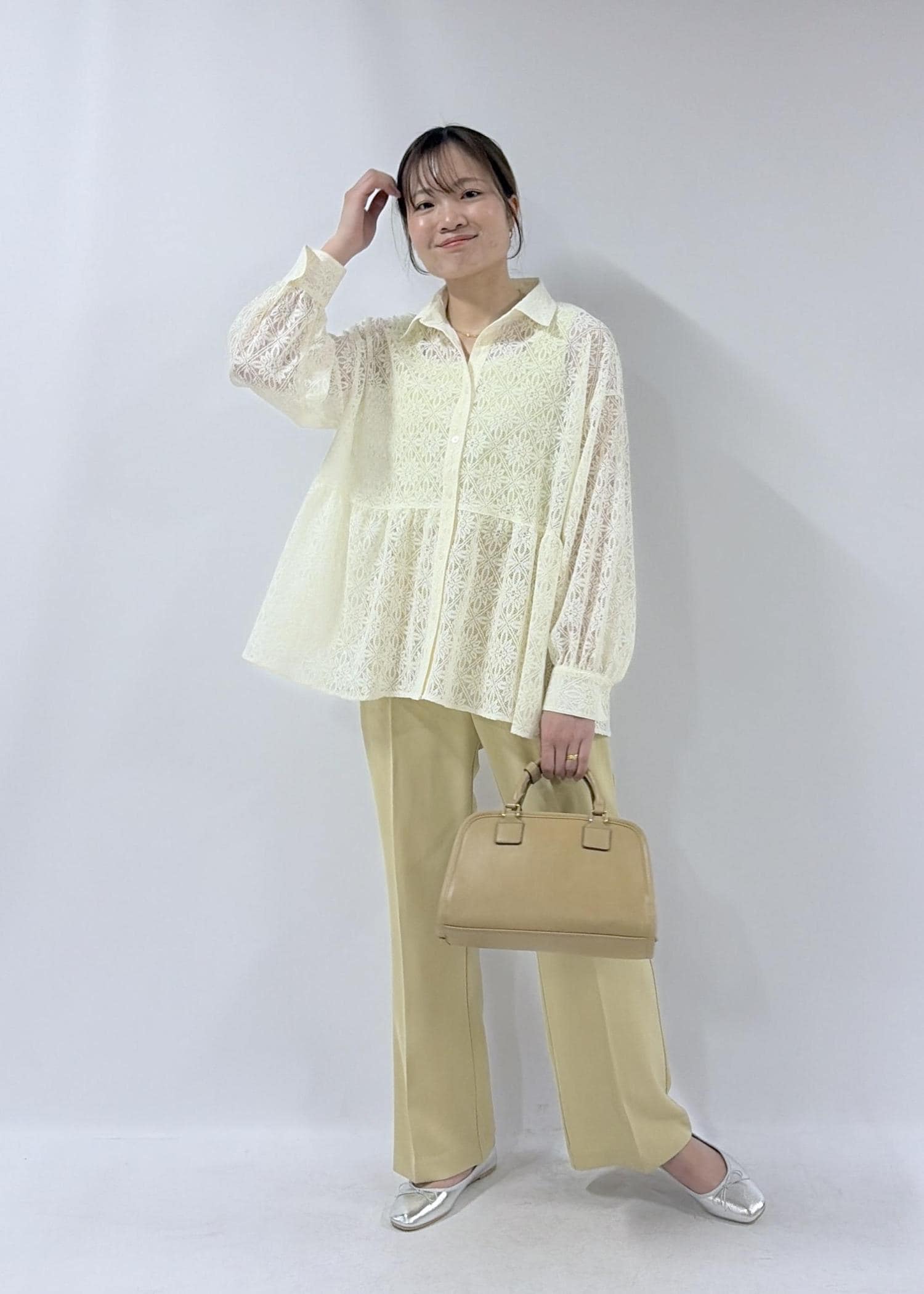 トレンドのレースアイテムを使ったコーディネート。