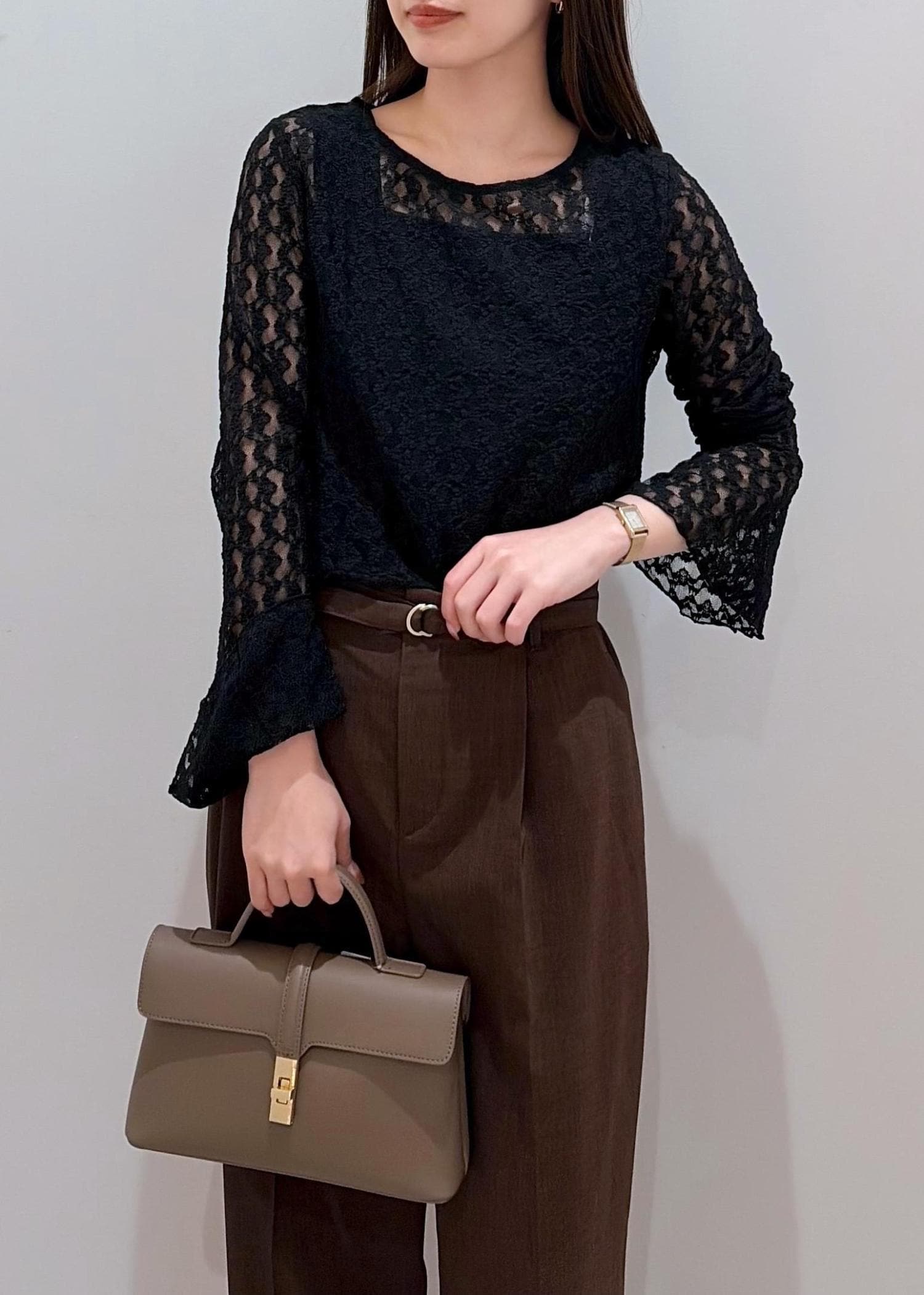 2BUY10%OFFROPÉ PICNICベルスリーブレースカットトップスブラック / F¥3,993レビュー程よい透け感のカットチュールレース。