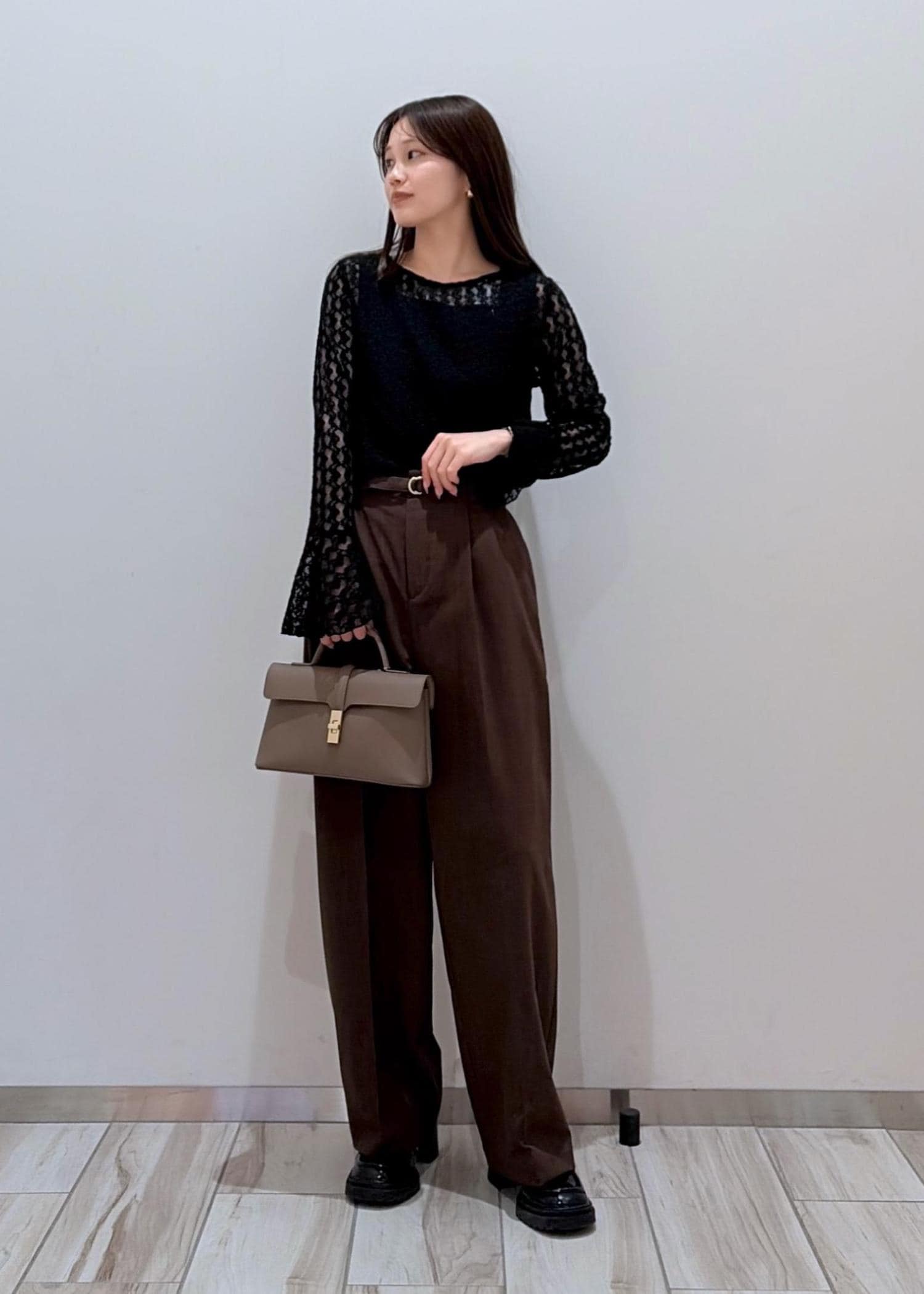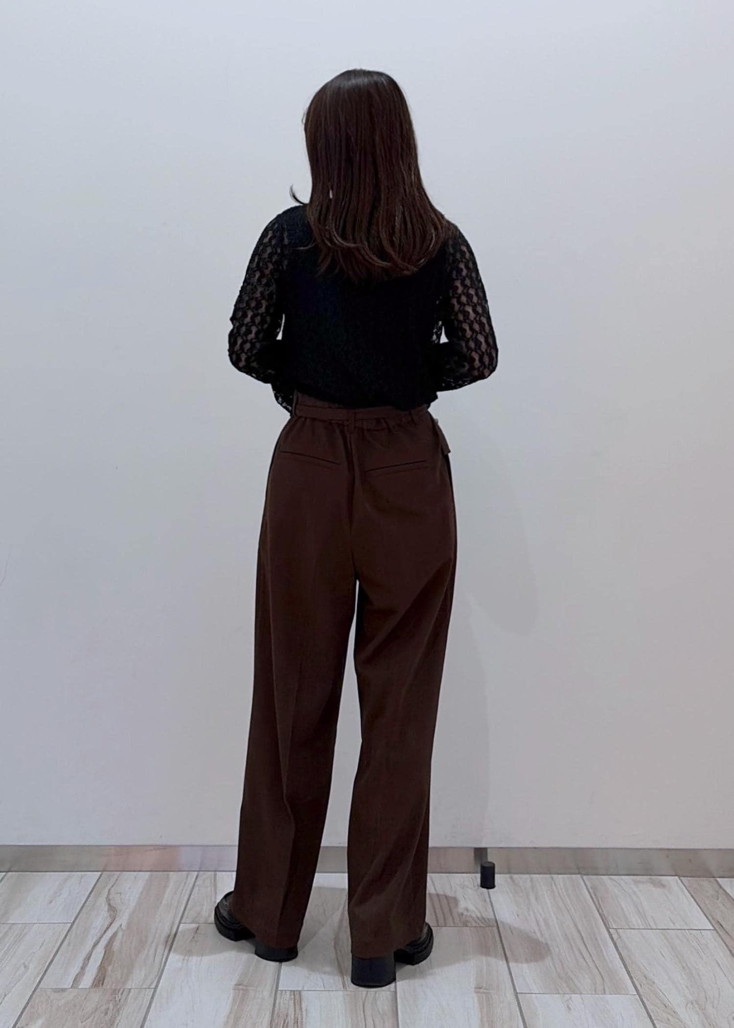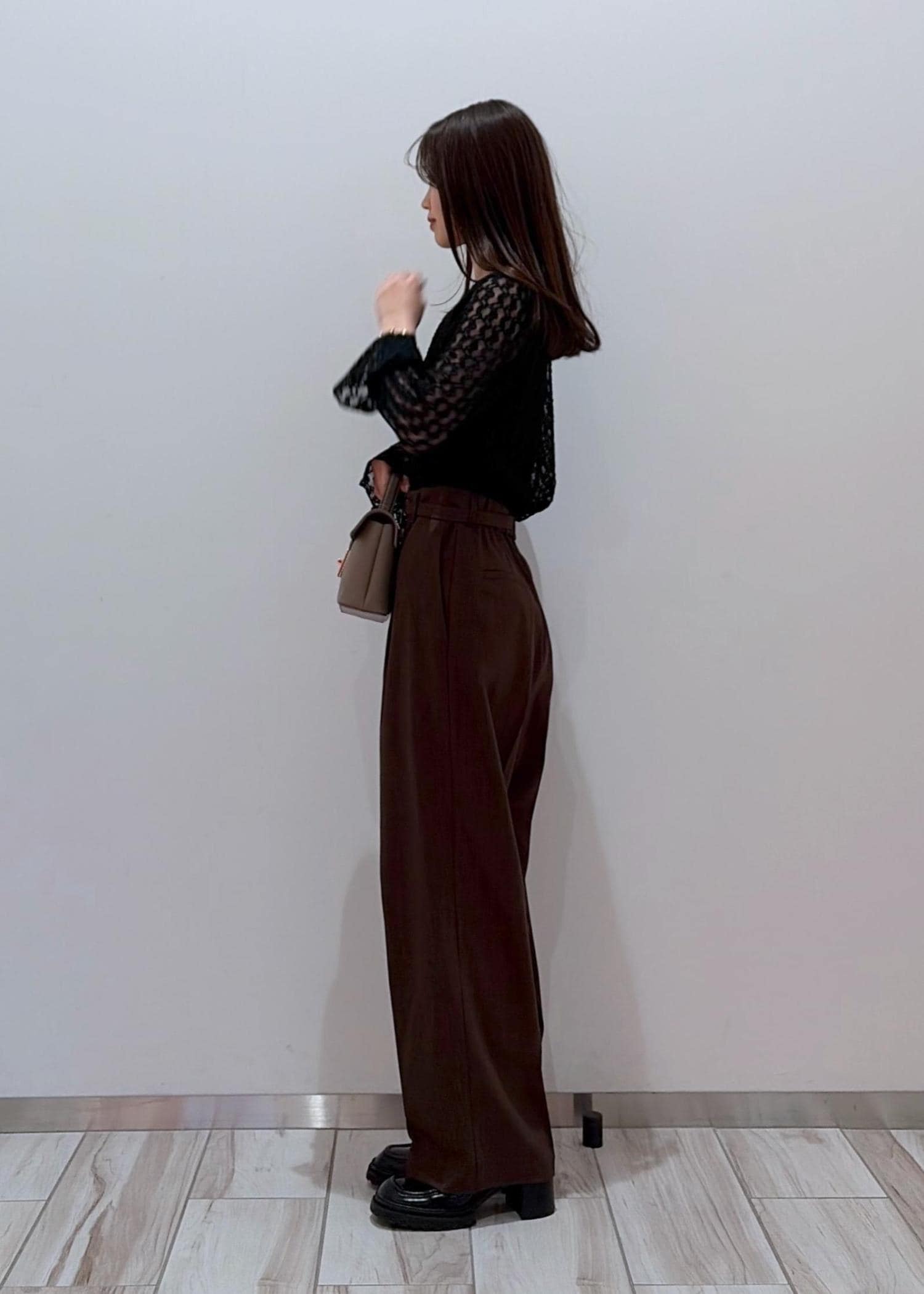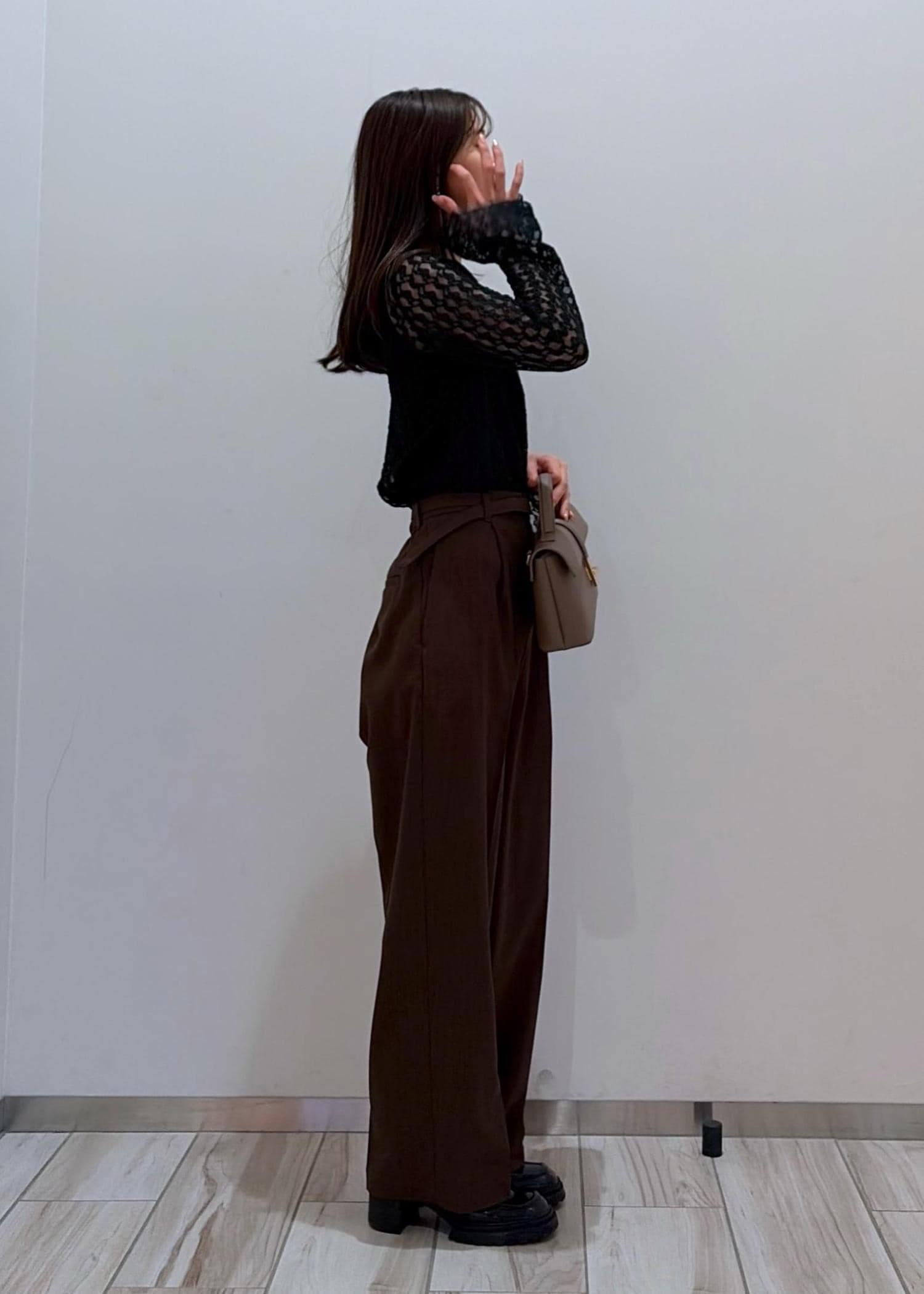 ボリュームが出すぎないので、綺麗めなワイドパンツとして履いていただけます。 -