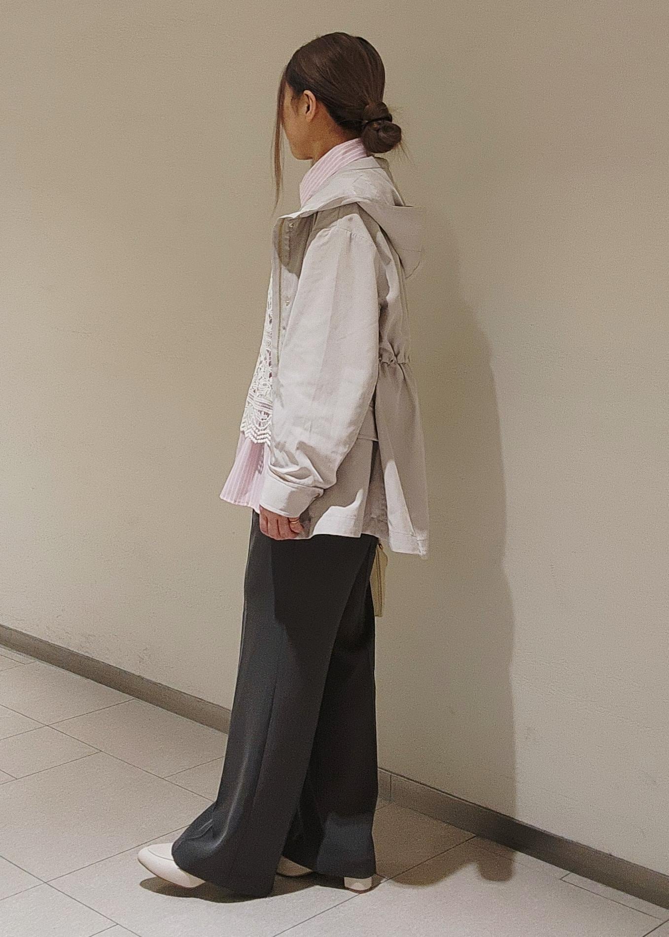 絞れるウエストと2段階の袖口釦でスッキリしたシルエットでも着られ、コーデの幅が広がります。