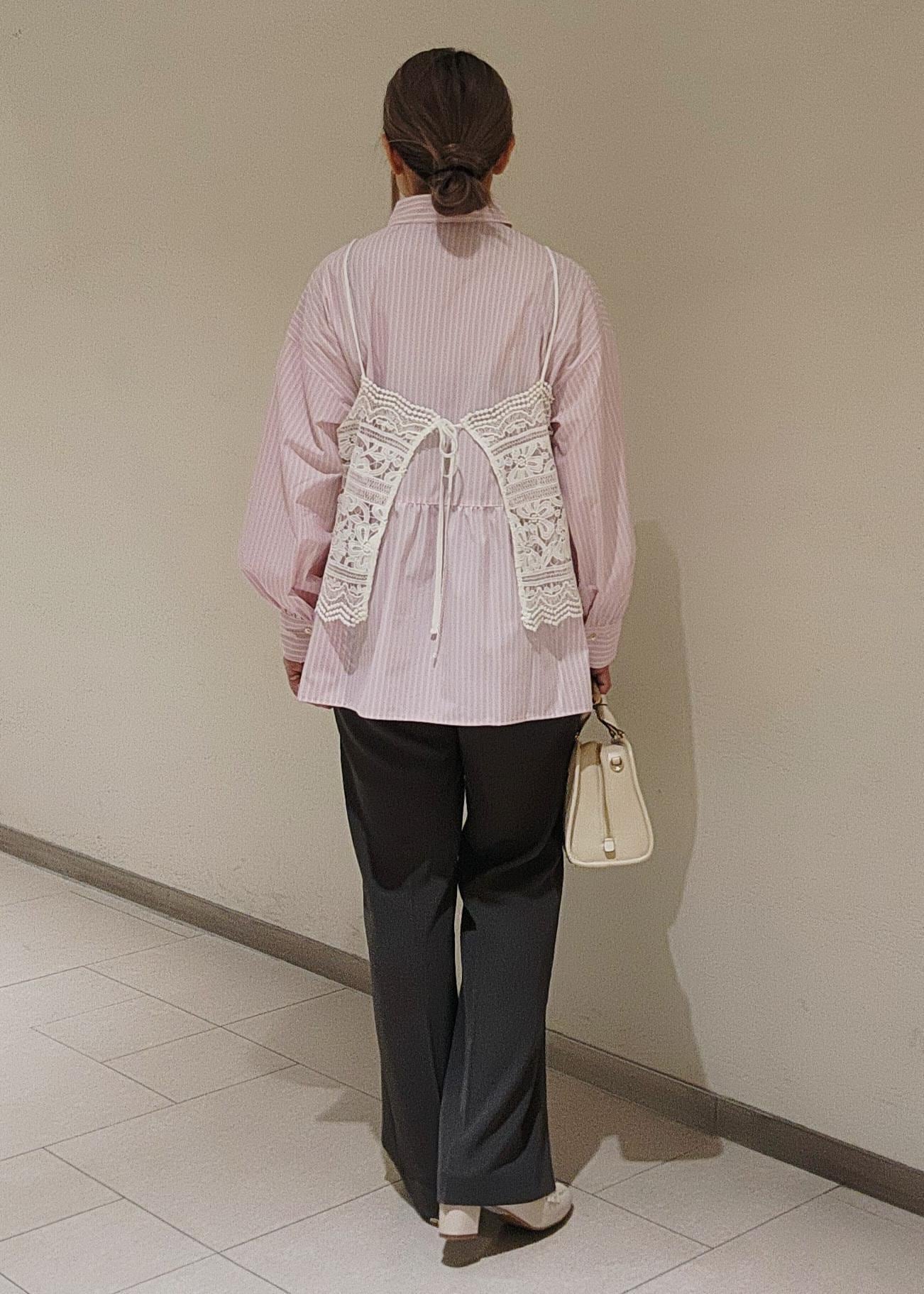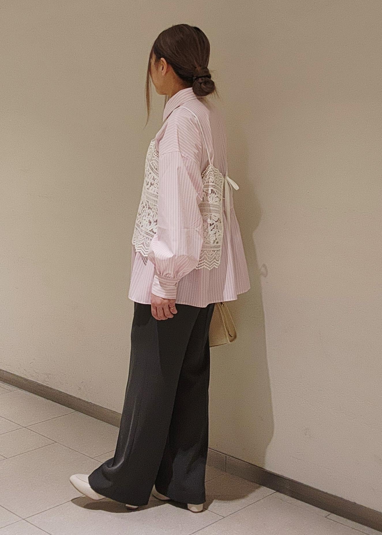 ピンクやレースで春らしく軽やかなコーデにしました。