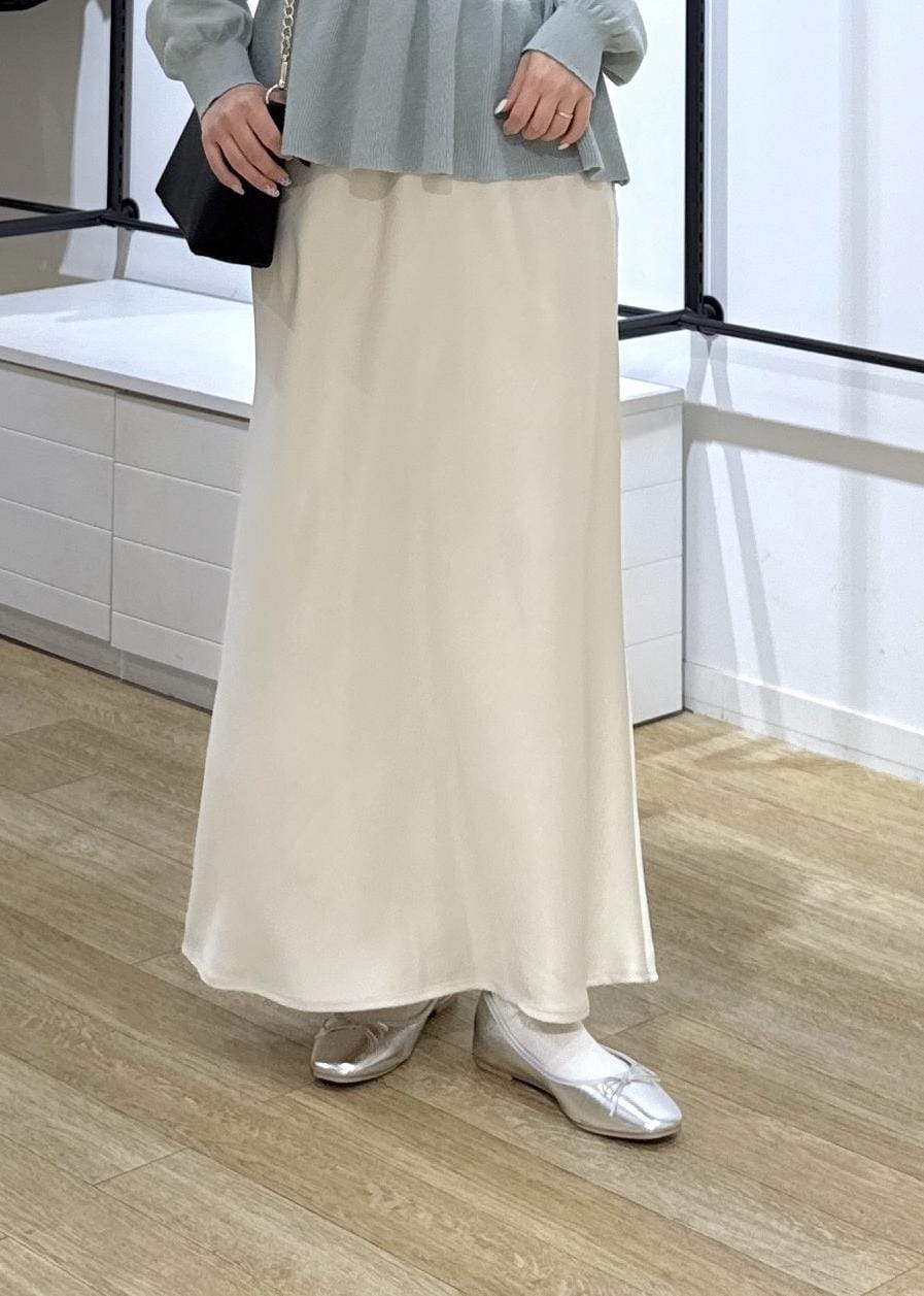 2BUY10%OFFROPÉ PICNIC細見えバイアスサテンスカート/イージーケアオフホワイト / F¥6,490レビュー着丈がくるぶしにかかる長さで、ウエストは総ゴムで履き心地ラクです。