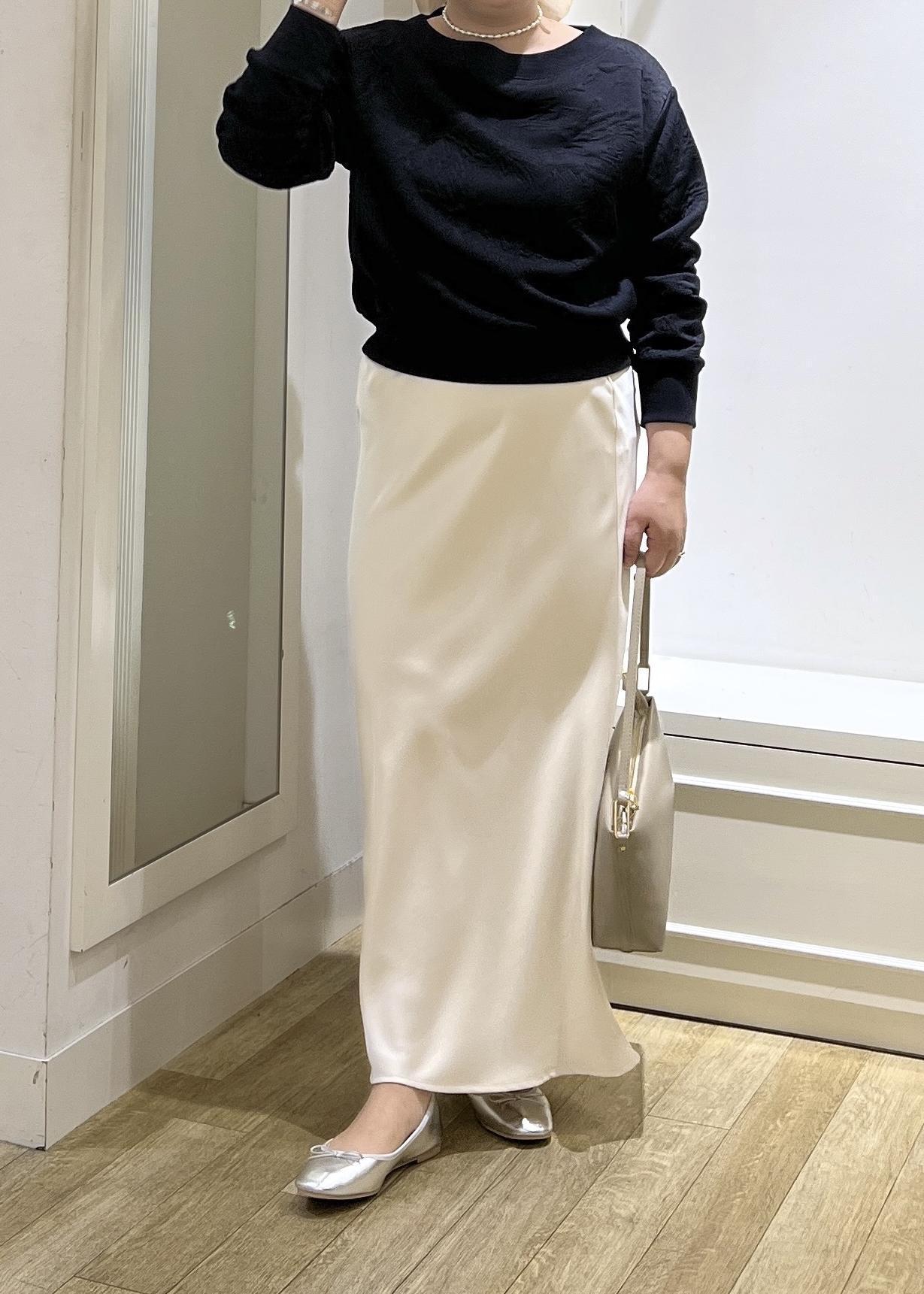 2BUY10%OFFROPÉ PICNIC細見えバイアスサテンスカート/イージーケアオフホワイト / F¥6,490レビュー上品な光沢感のある素材感が