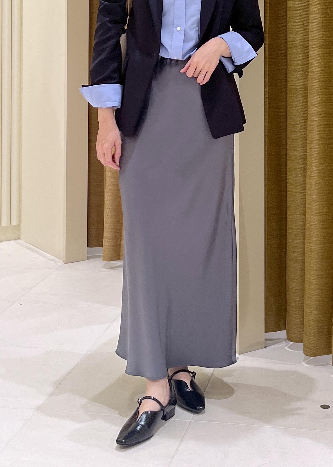 細見えバイアスサテンスカート/イージーケア