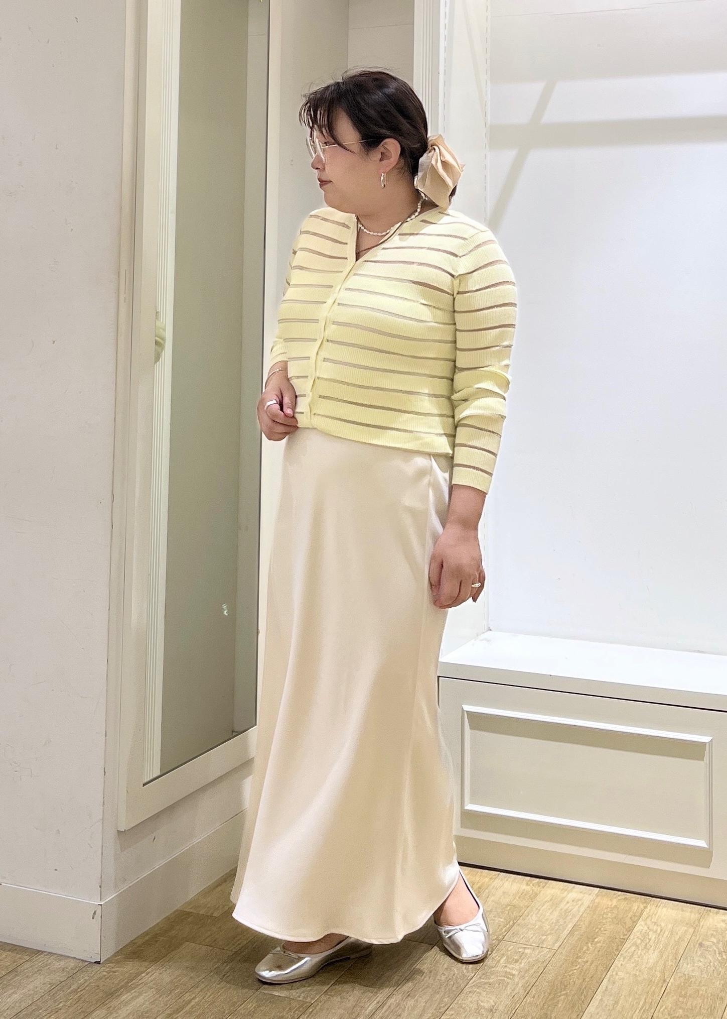 ほんのりフレアなシルエットで、脚のラインがスッキリみえます。